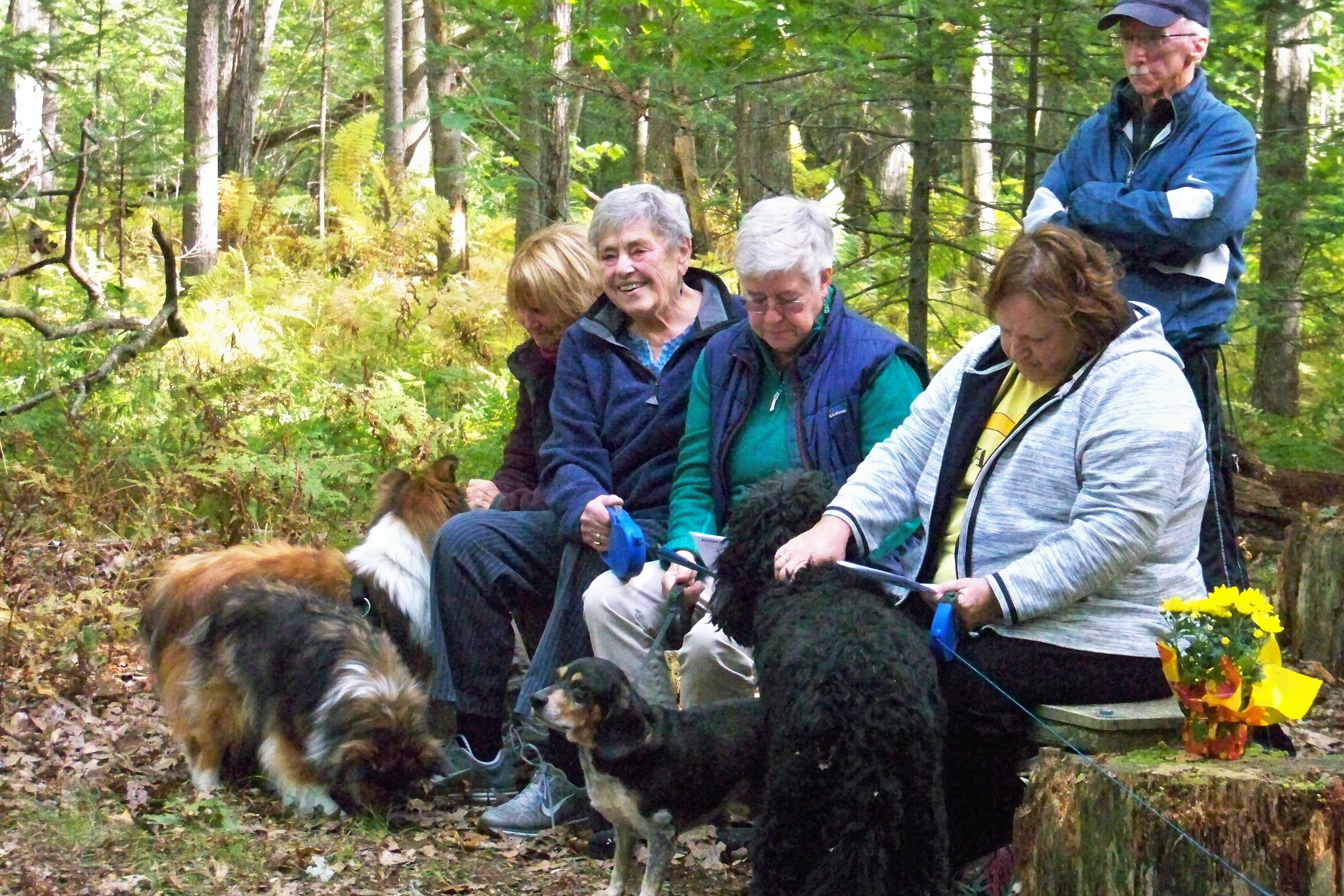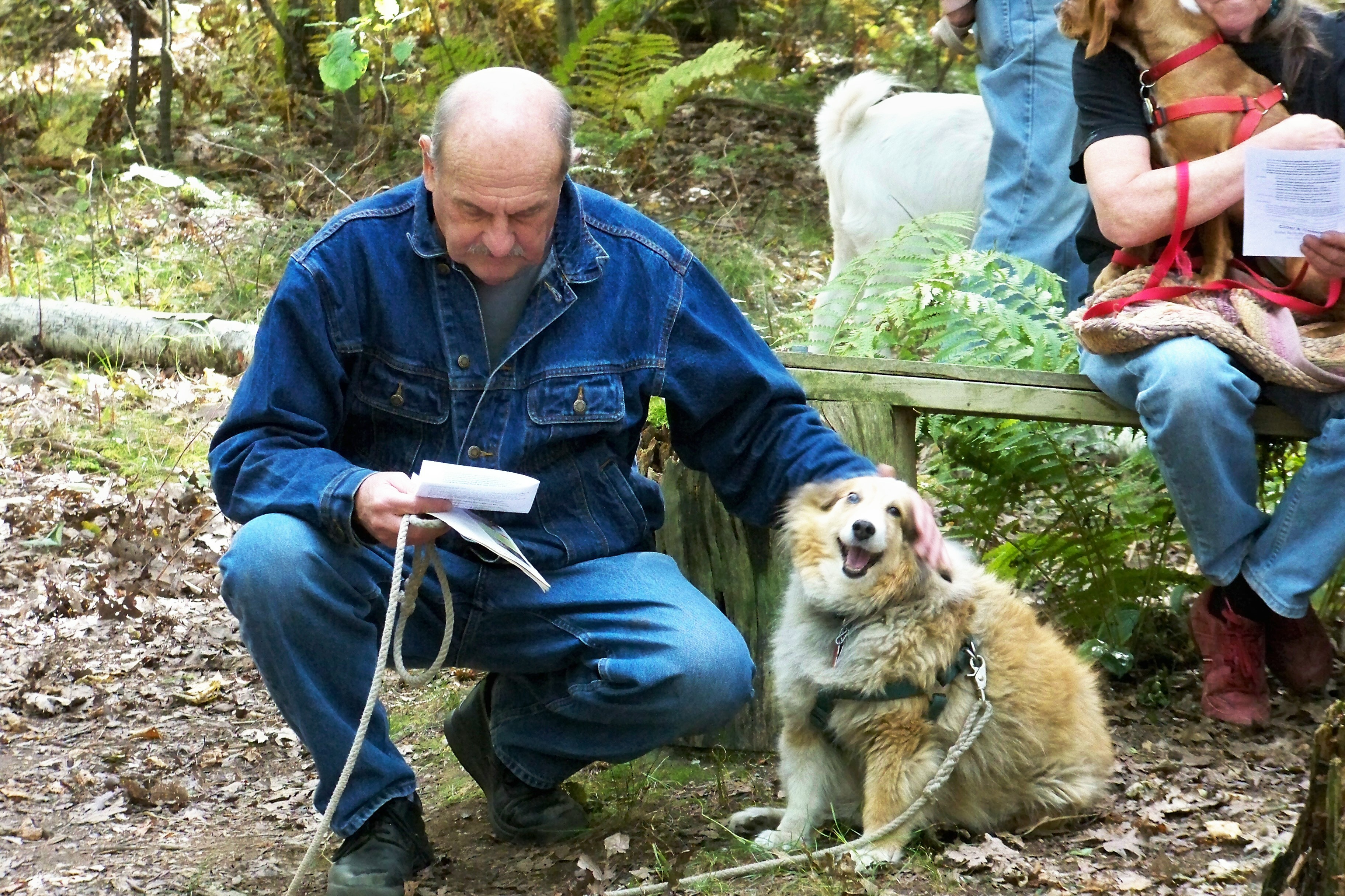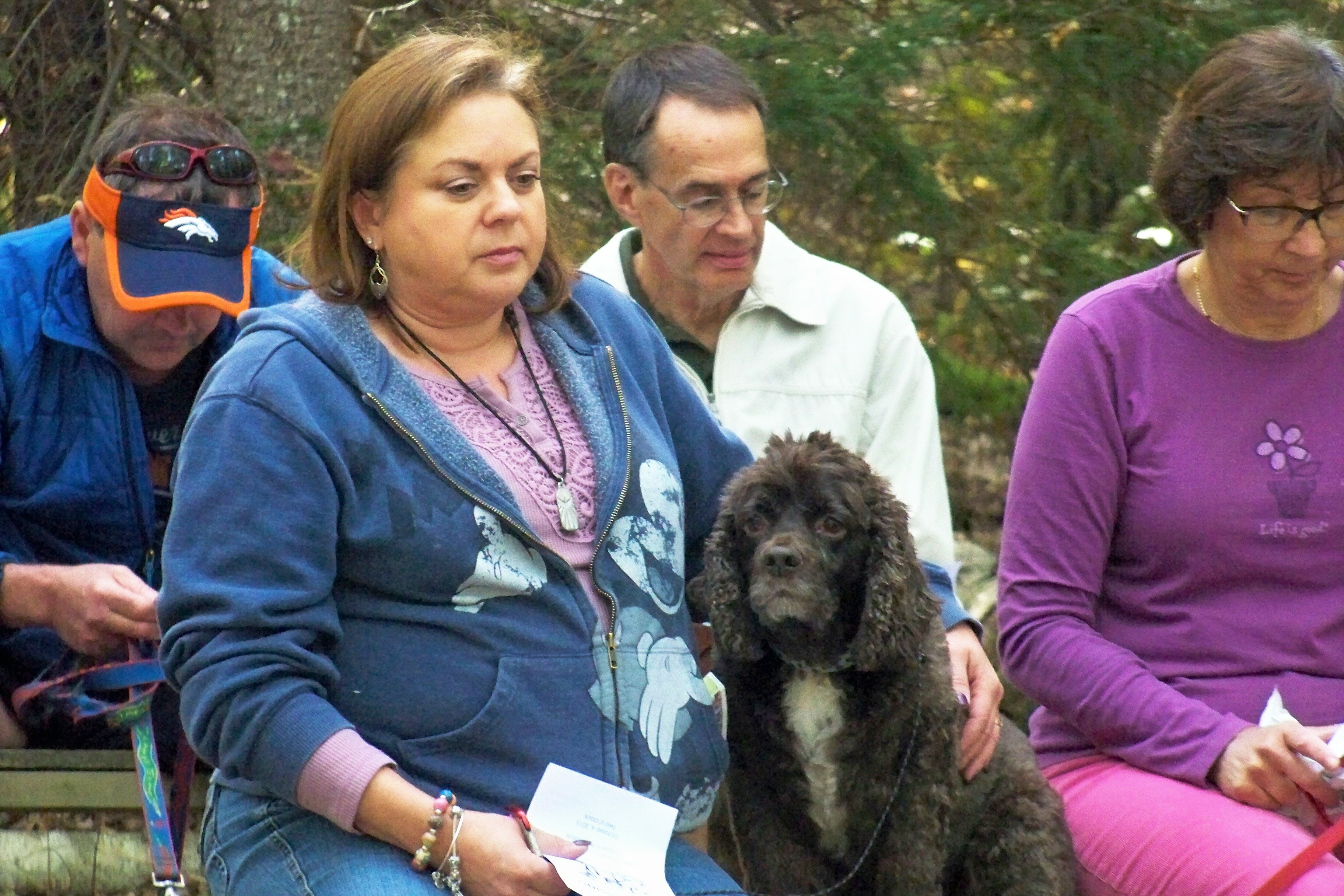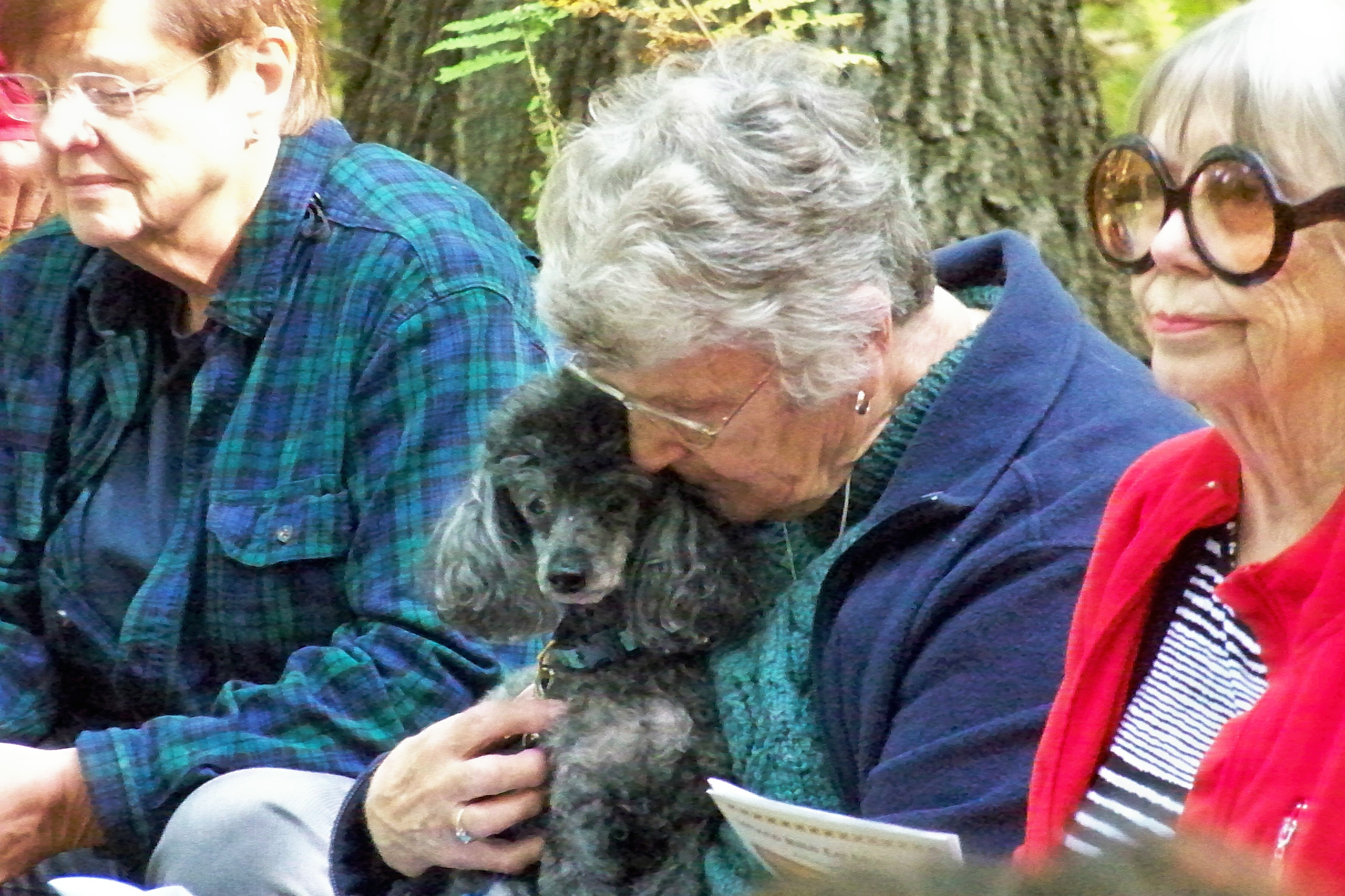 Most participants knew of the blessing in advance, but one couple from Portland learned of the event while driving past the church after a visit to Kettle Cove. They stopped, carried their 15-year-old dog Kicha into the woods and received the blessing. They said Kicha has been recovering from cancer for the past 2 1/2 years.