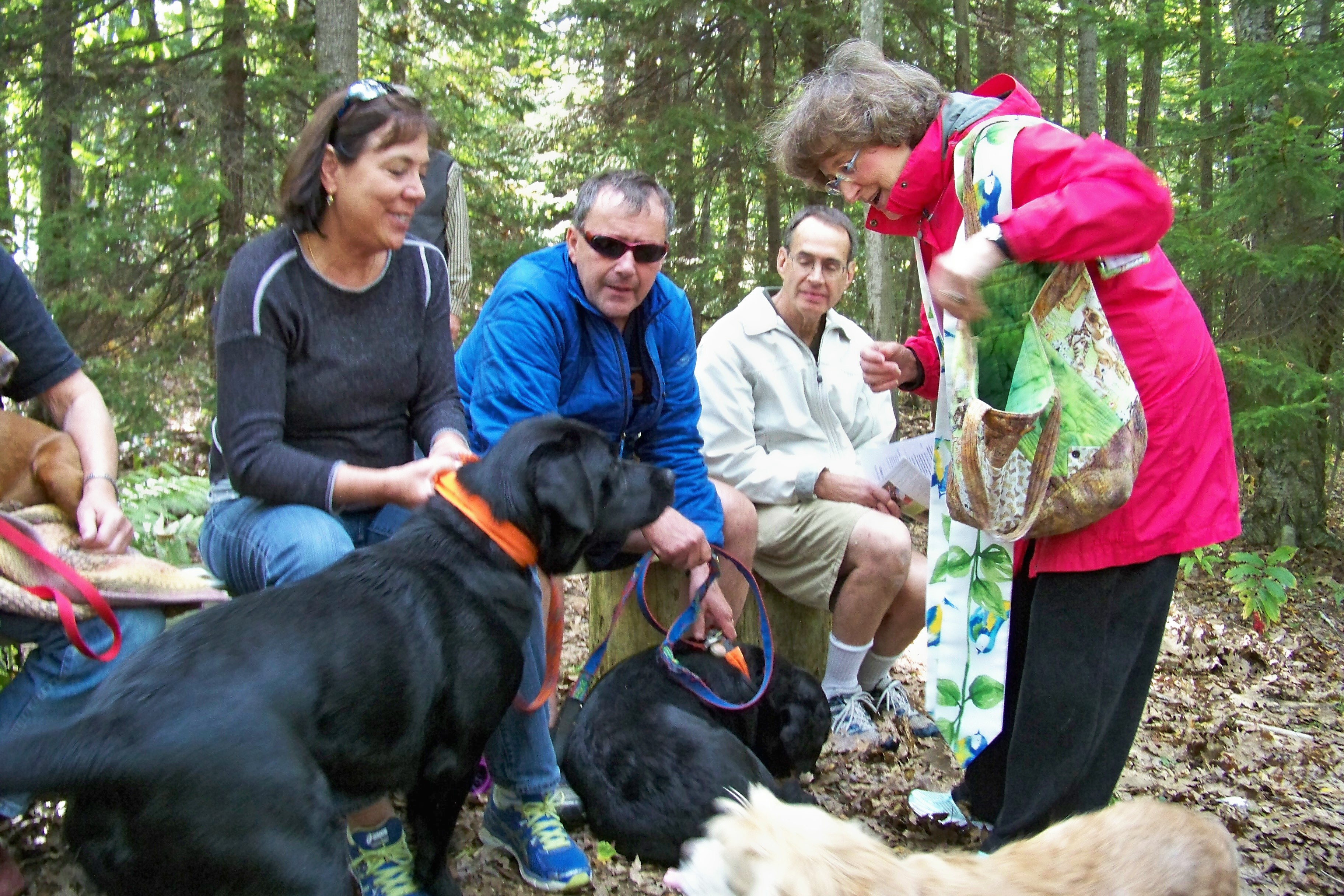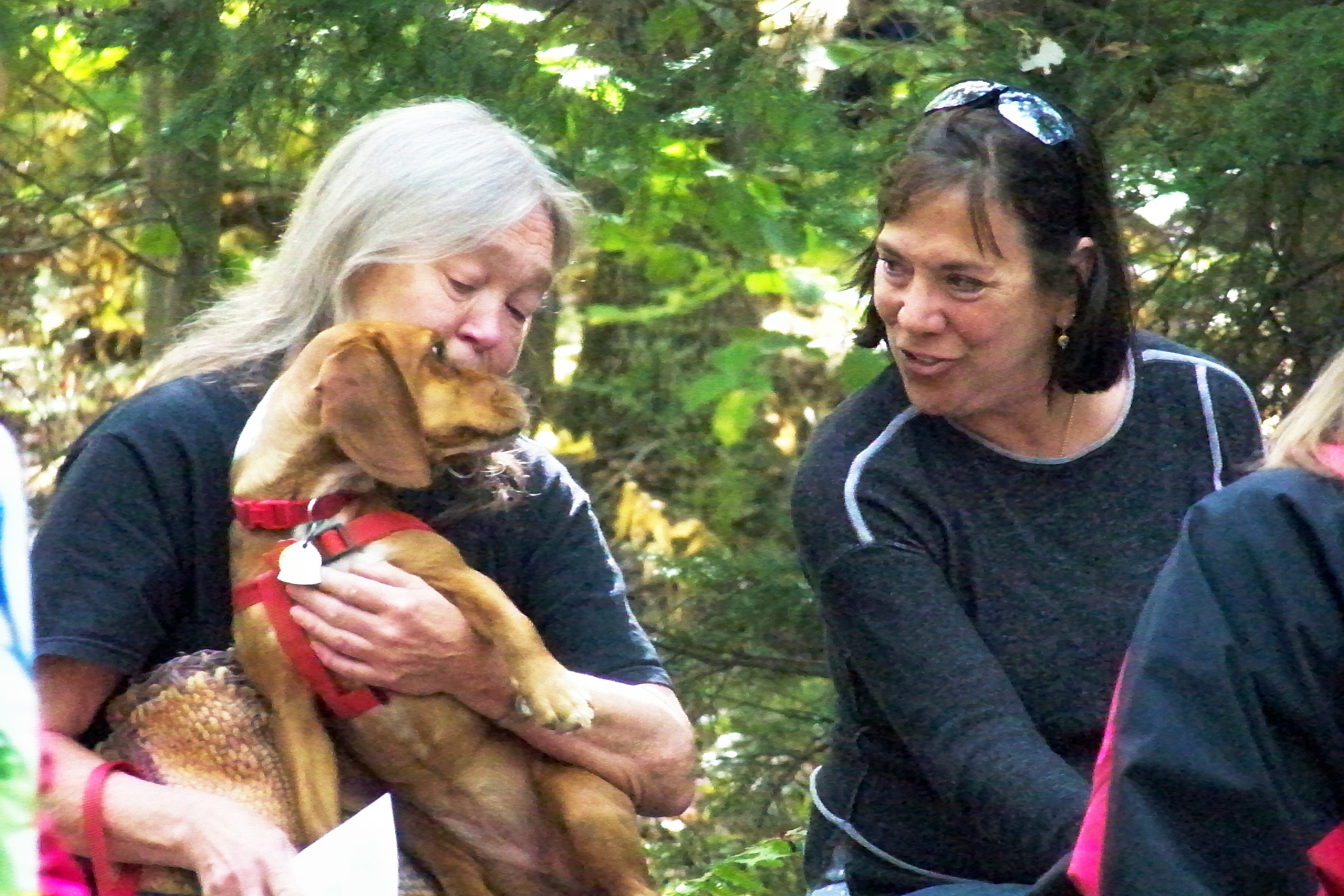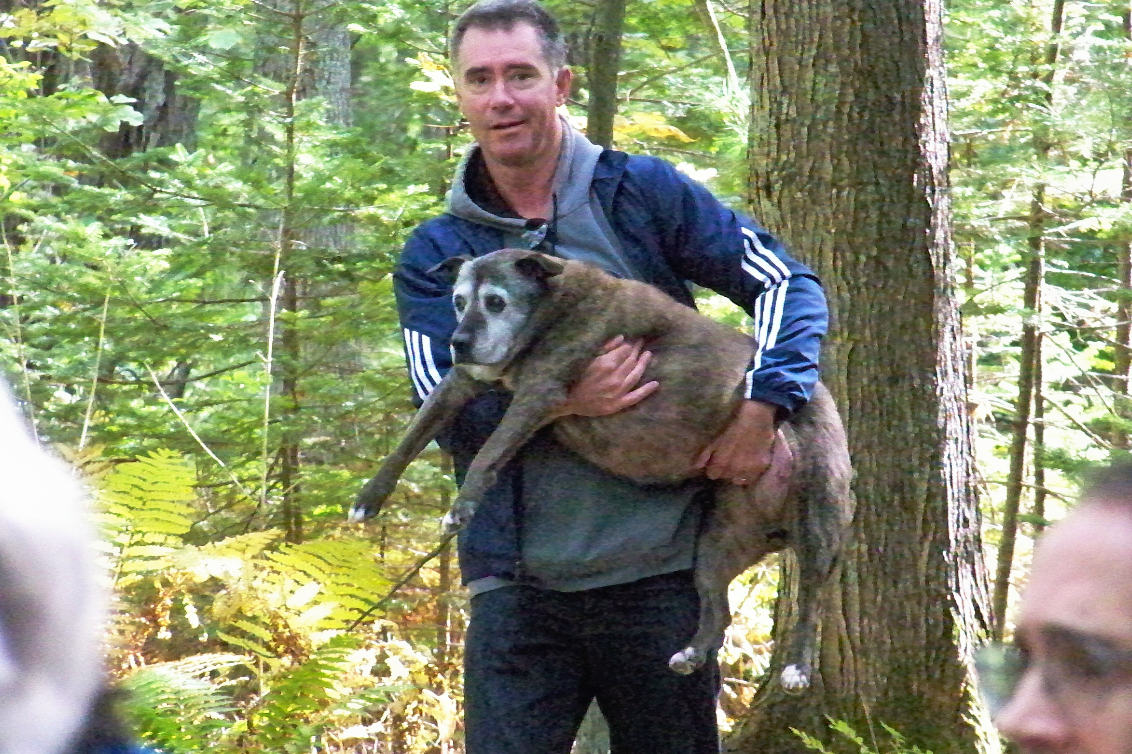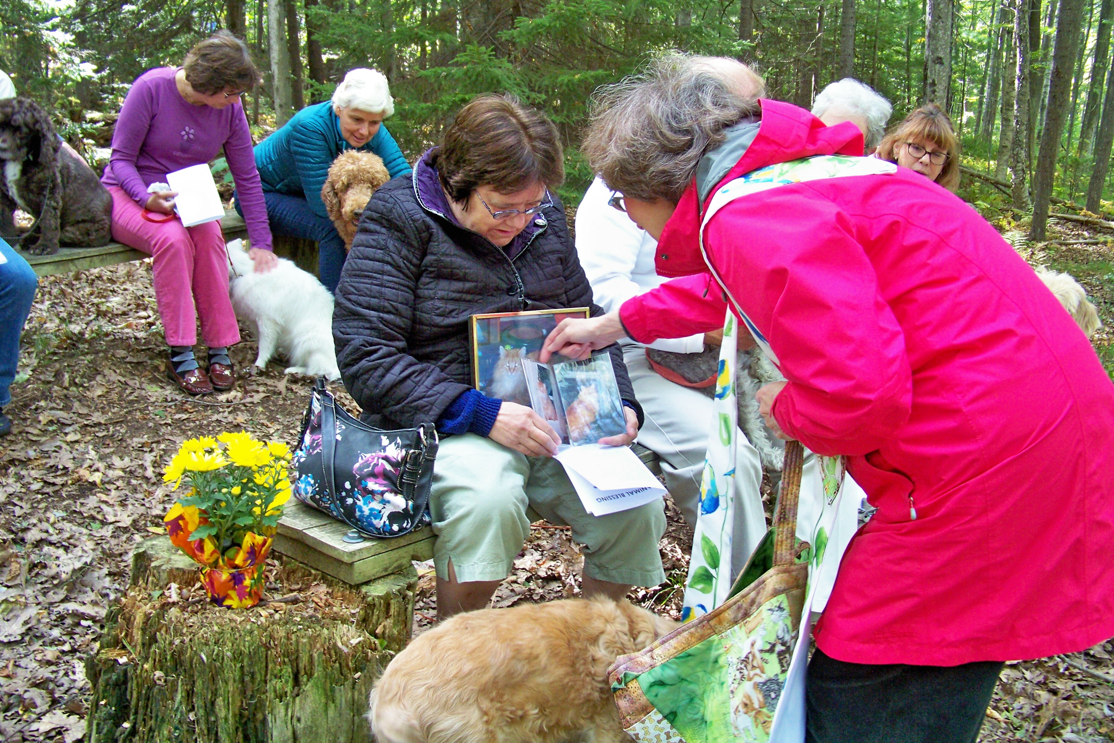 Most participants knew of the blessing in advance, but one couple from Portland learned of the event while driving past the church after a visit to Kettle Cove. They stopped, carried their 15-year-old dog Kicha into the woods and received the blessing. They said Kicha has been recovering from cancer for the past 2 1/2 years.
