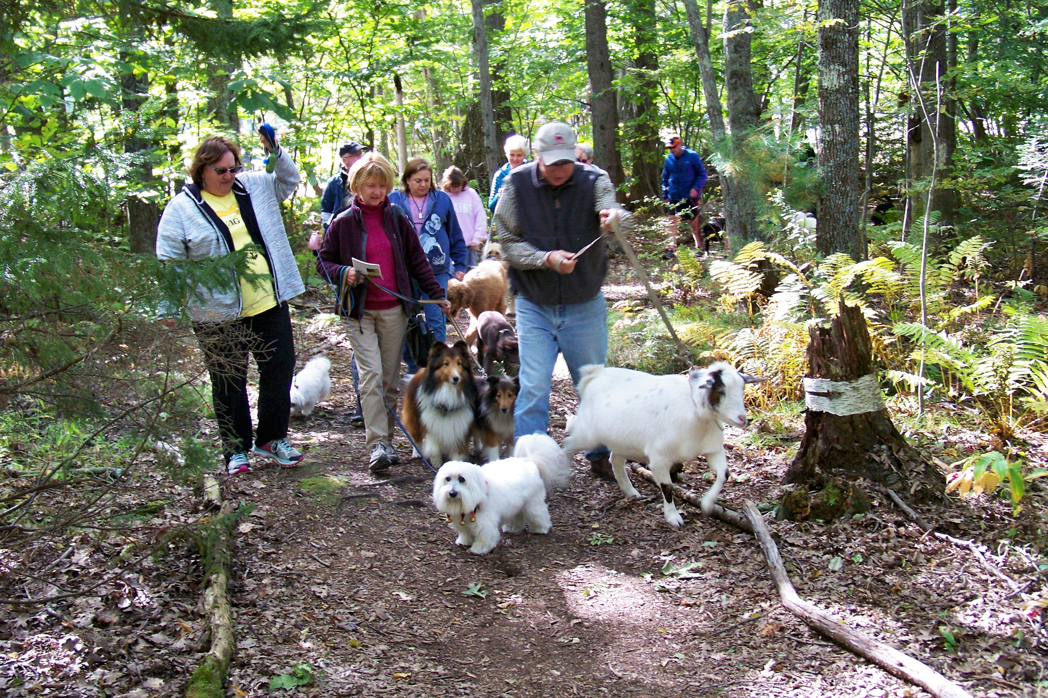 The gathering of more than 40 people with their dogs, one cat and a goat was a blessing for all on a perfect fall afternoon, bringing the peaceable kingdom into a canopied corner of Cape Elizabeth’s Robinson Woods.