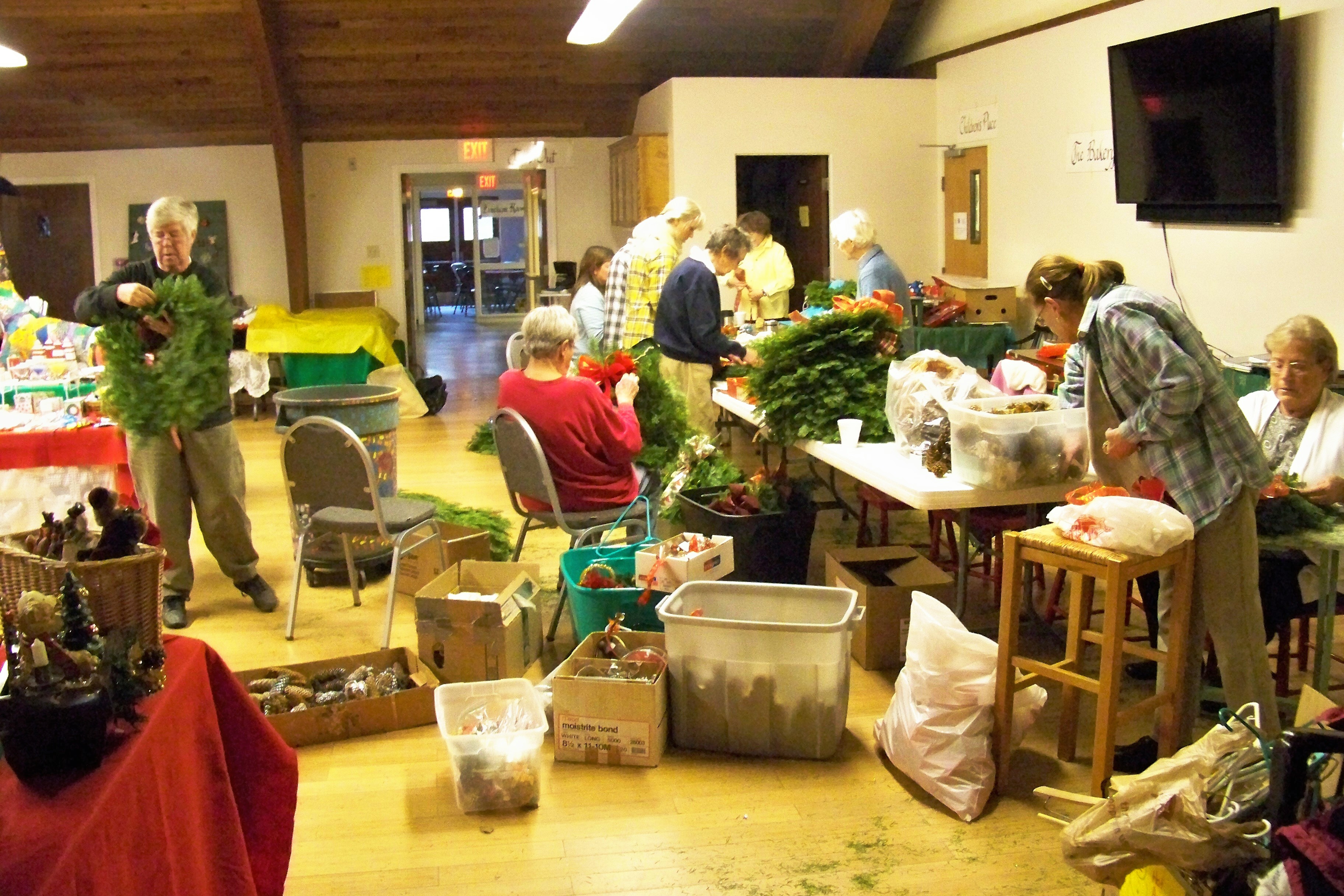 With just two days remaining until the church’s Jolly Snowman Christmas Fair, a dozen women from the church spent Thursday morning decorating wreaths with colorful ribbons, shiny decorations and enough spirit to carry us to Christmas Eve.