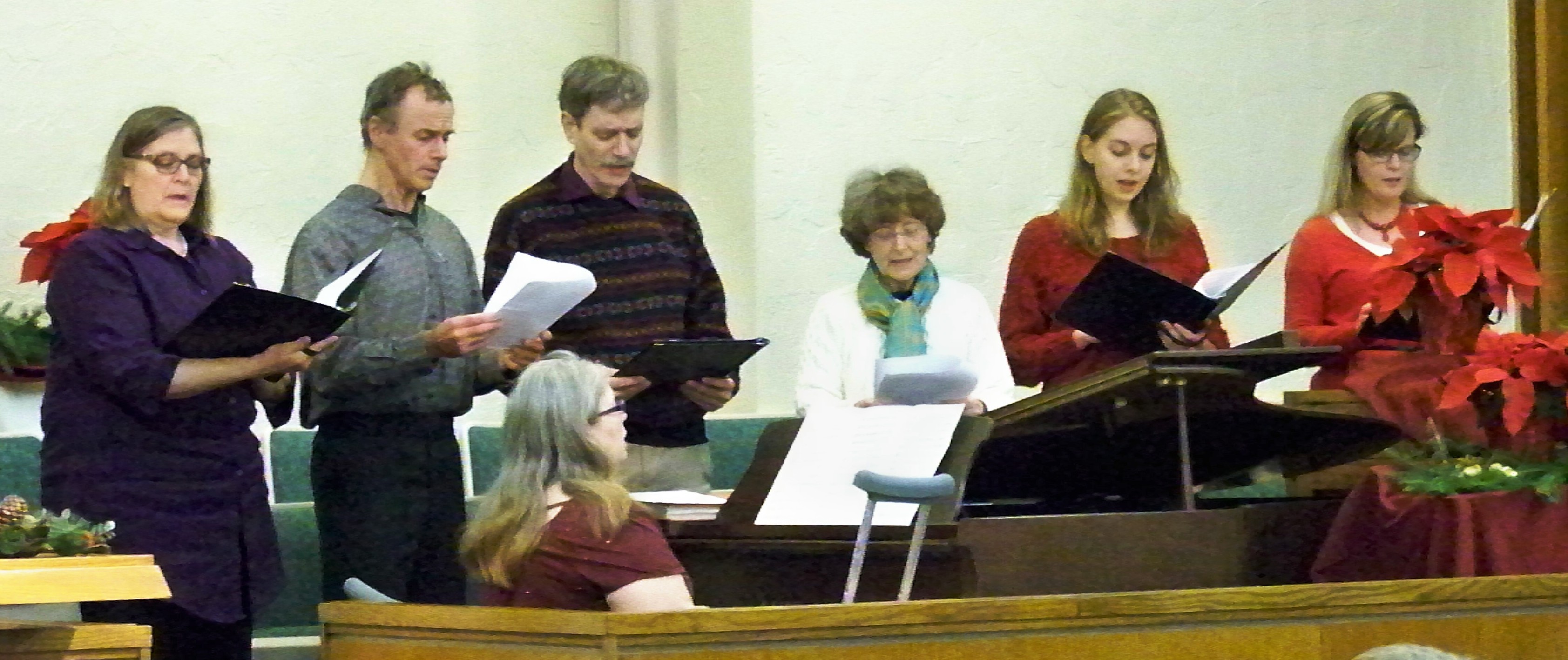 The concert’s choirs included a “pick-up” choir from our church, including Mark, Margaret and Camille Braun, Rick Fontana, Beth Austin, the Rev. Ruth Morrison, and Gail Parker playing piano. Our choir sang “Come, Thou Long-Expected Jesus,” “Nino Lindo” (Child So Lovely) and “The Huron Carol,” a French Canadian melody.