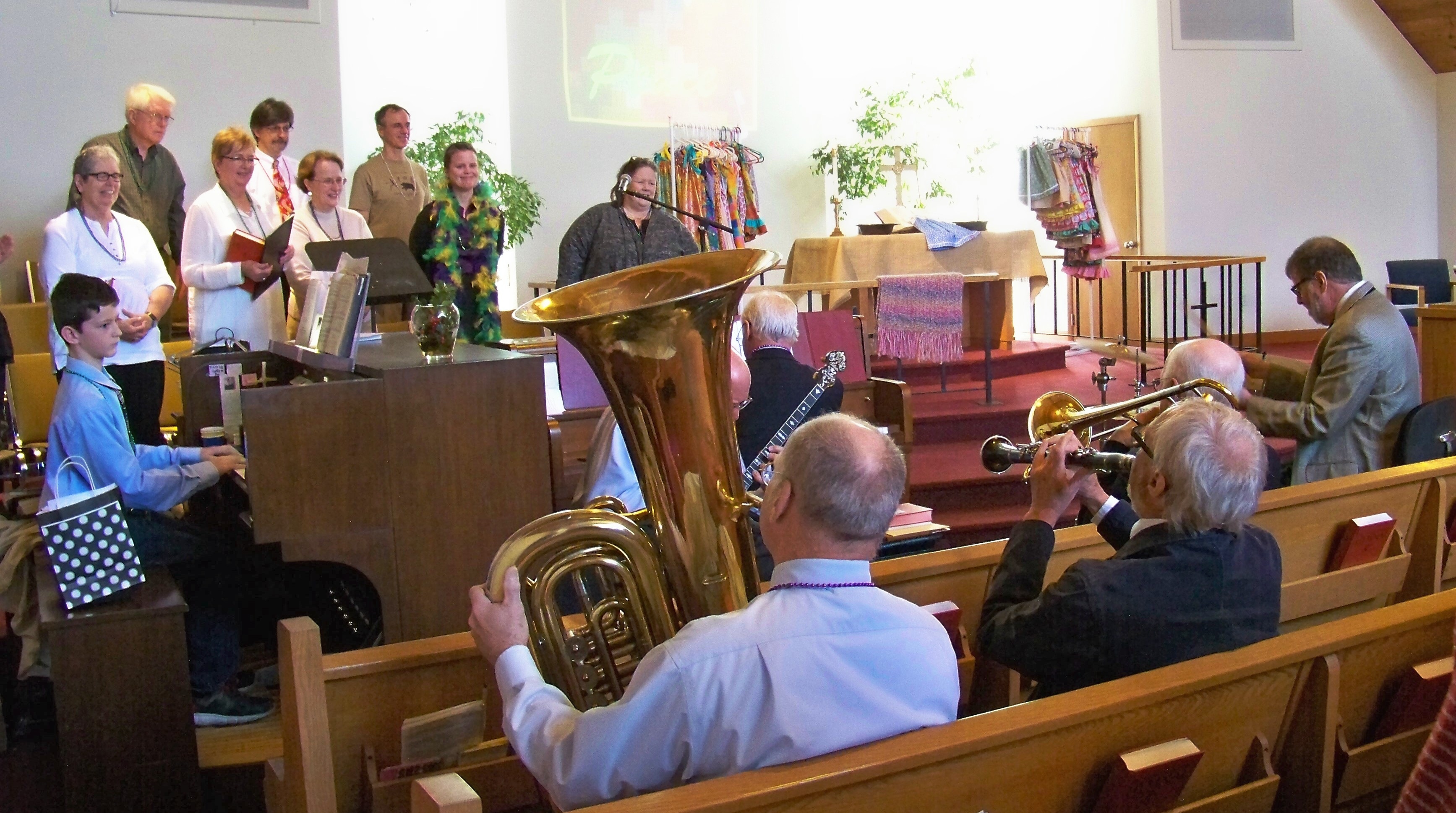 The service was led by special arrangements from Faith York and the choir and Stephen Bither and his talented collection of musicians, including Paul Aranson on drums, Tom Wilbur on sousaphone, Eric Anderson on trombone, Barry Daniels on clarinet, Peter Dunphy on banjo, Stephen Bither on piano and both Gail Parker and Tyler Rodenberger on the organ.