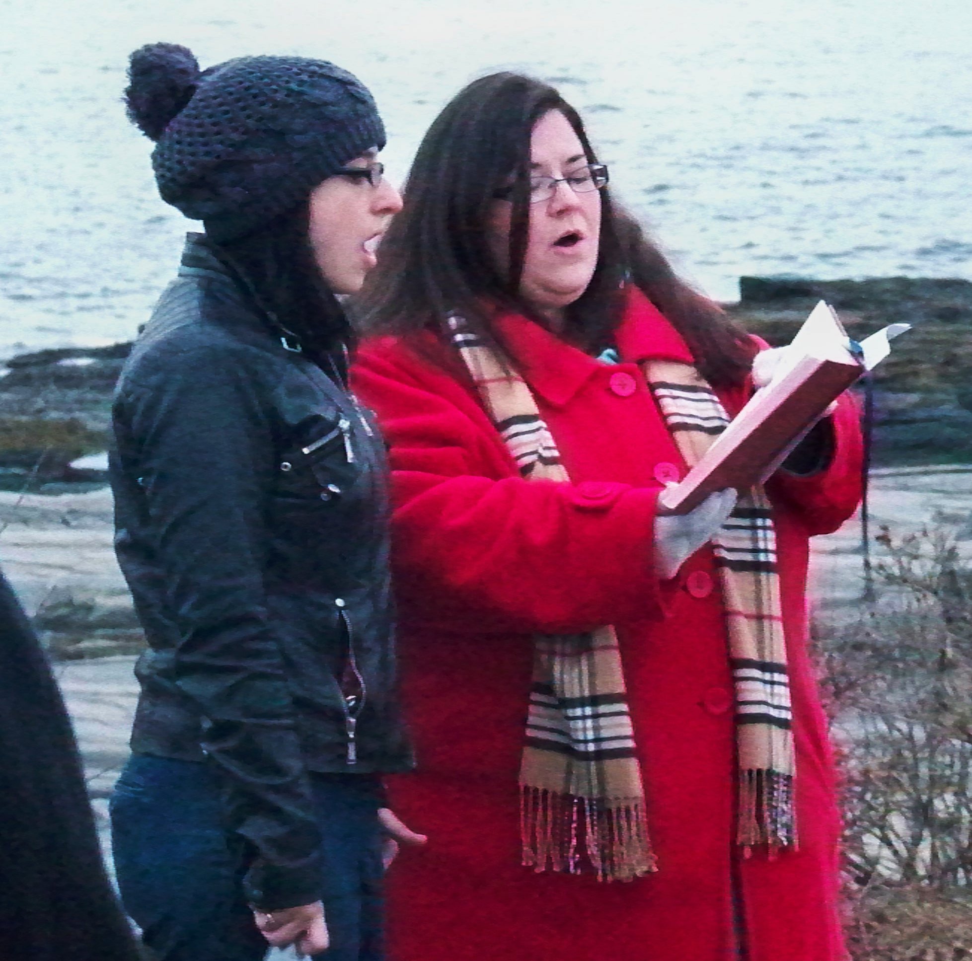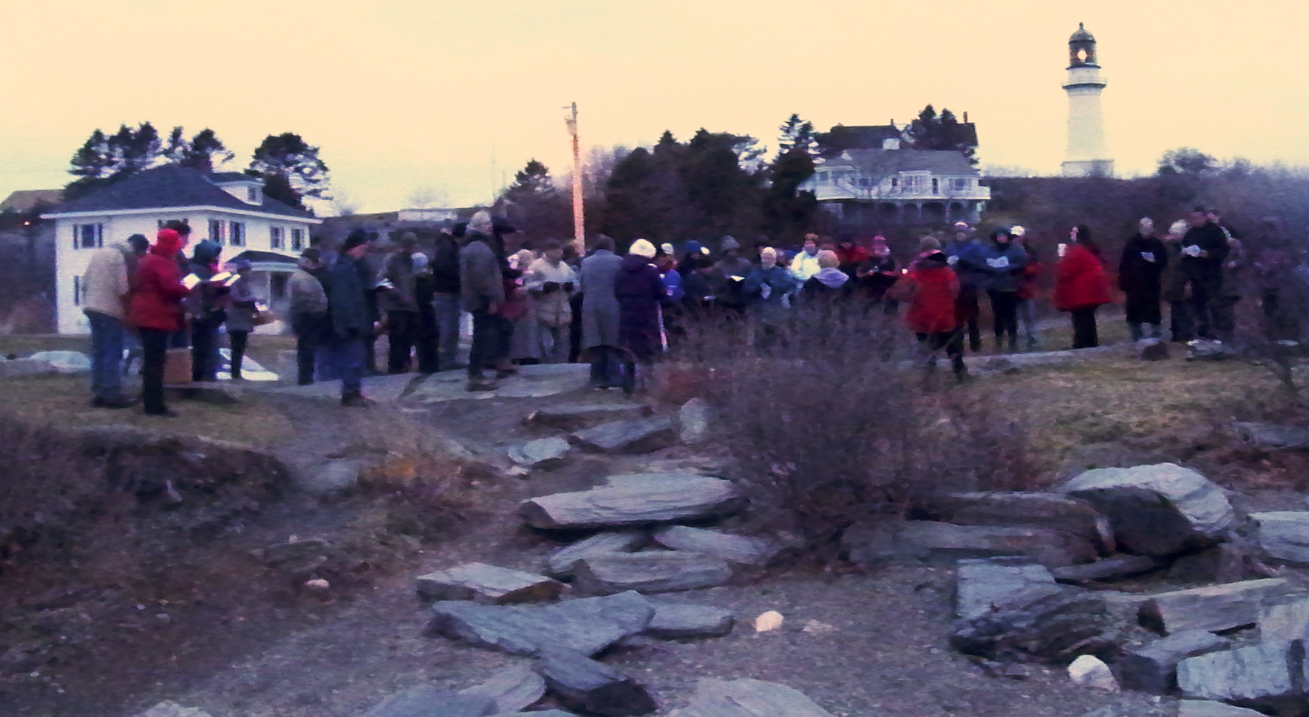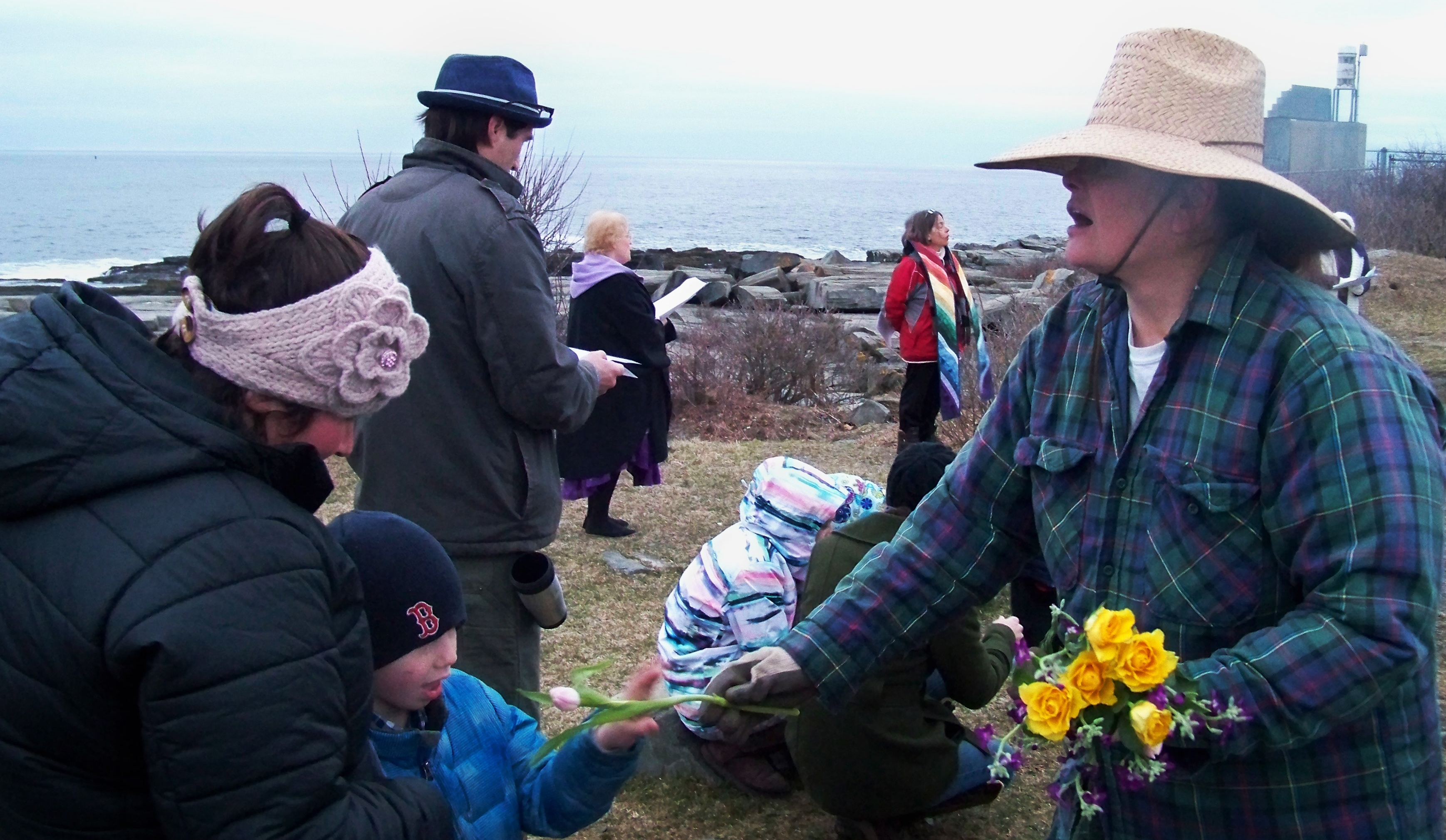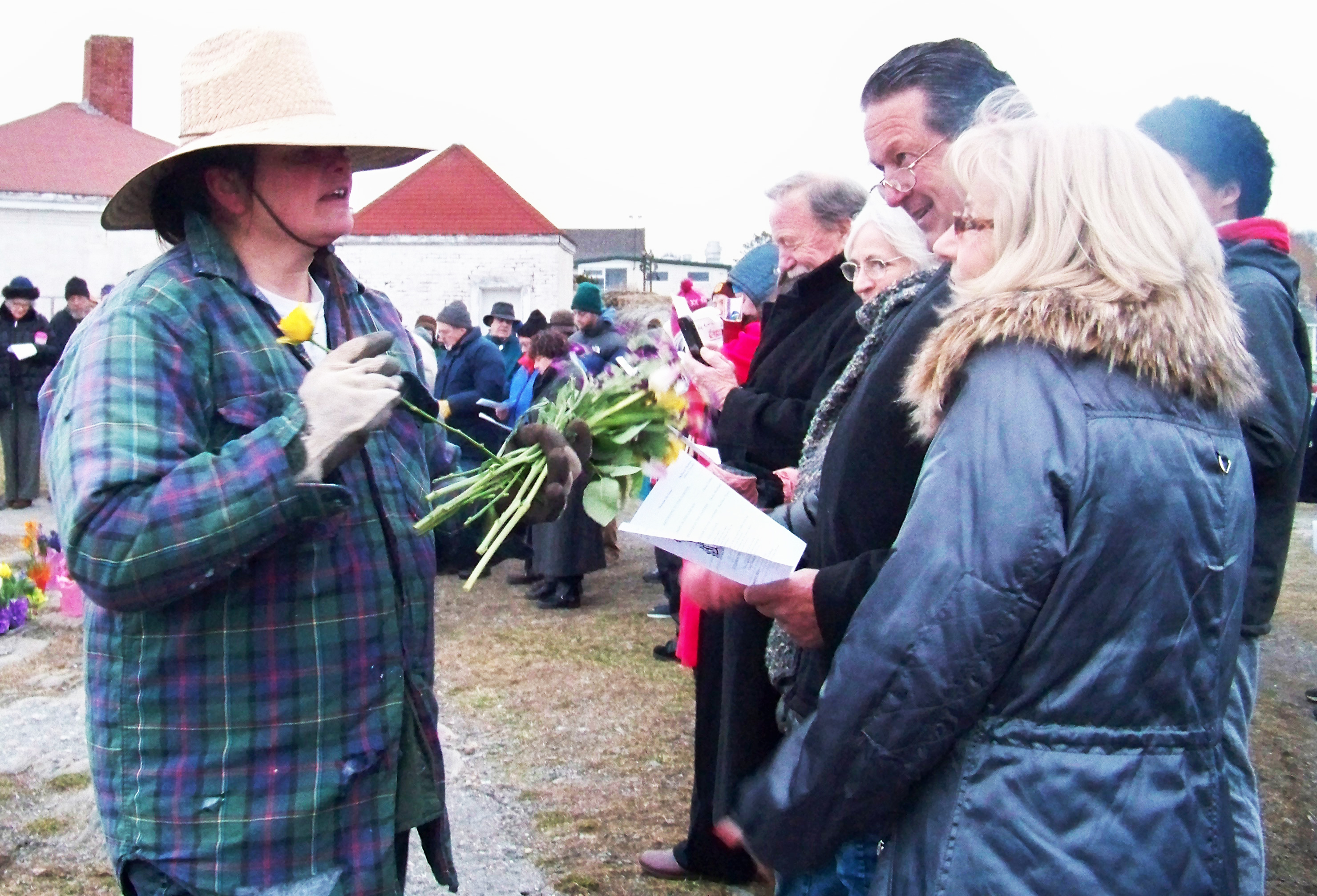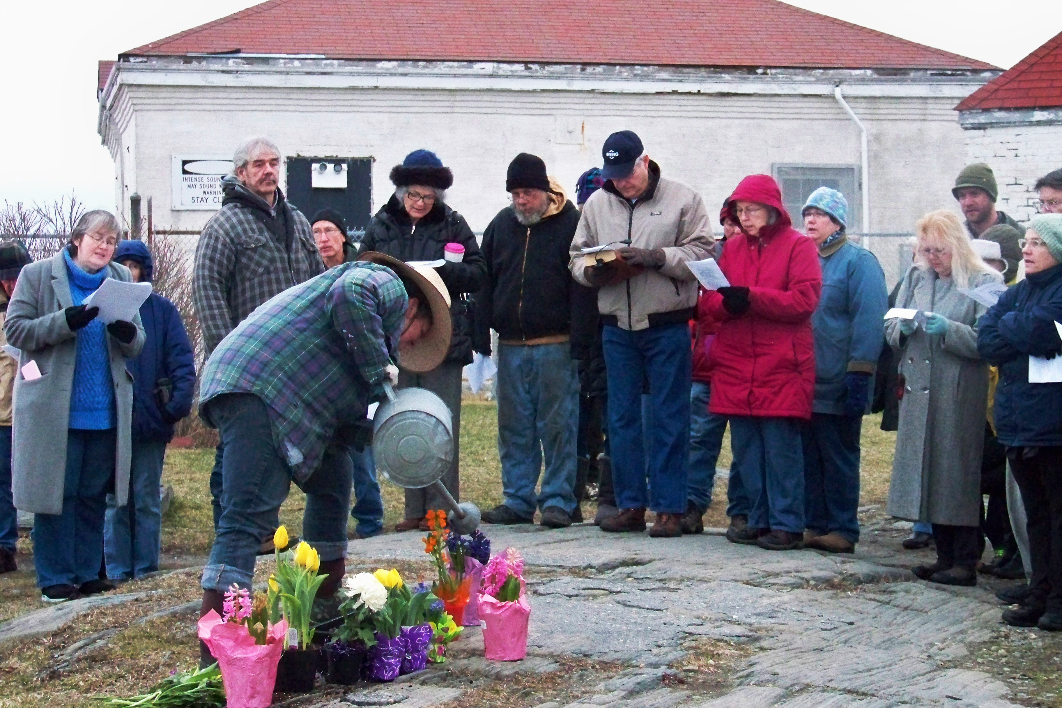 For this story, Shirley Maxwell Royall, an accomplished gardener herself, portrayed the Easter morning gardener at both services. While “In the Garden” was being sung at Two Lights, she tended to the flowers on the rocks and later handed out cut flowers to some who had gathered in the chilly temperatures of first light.