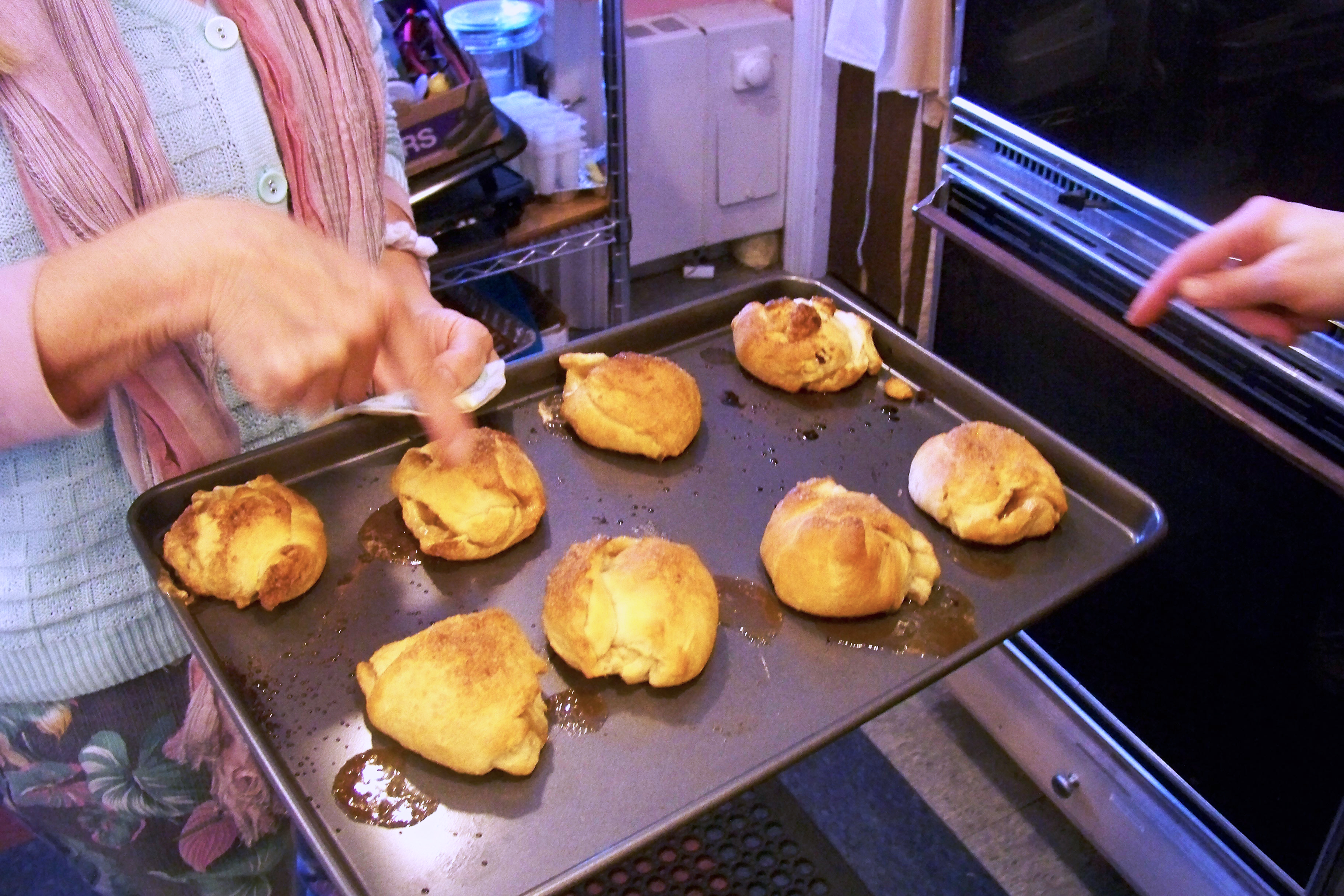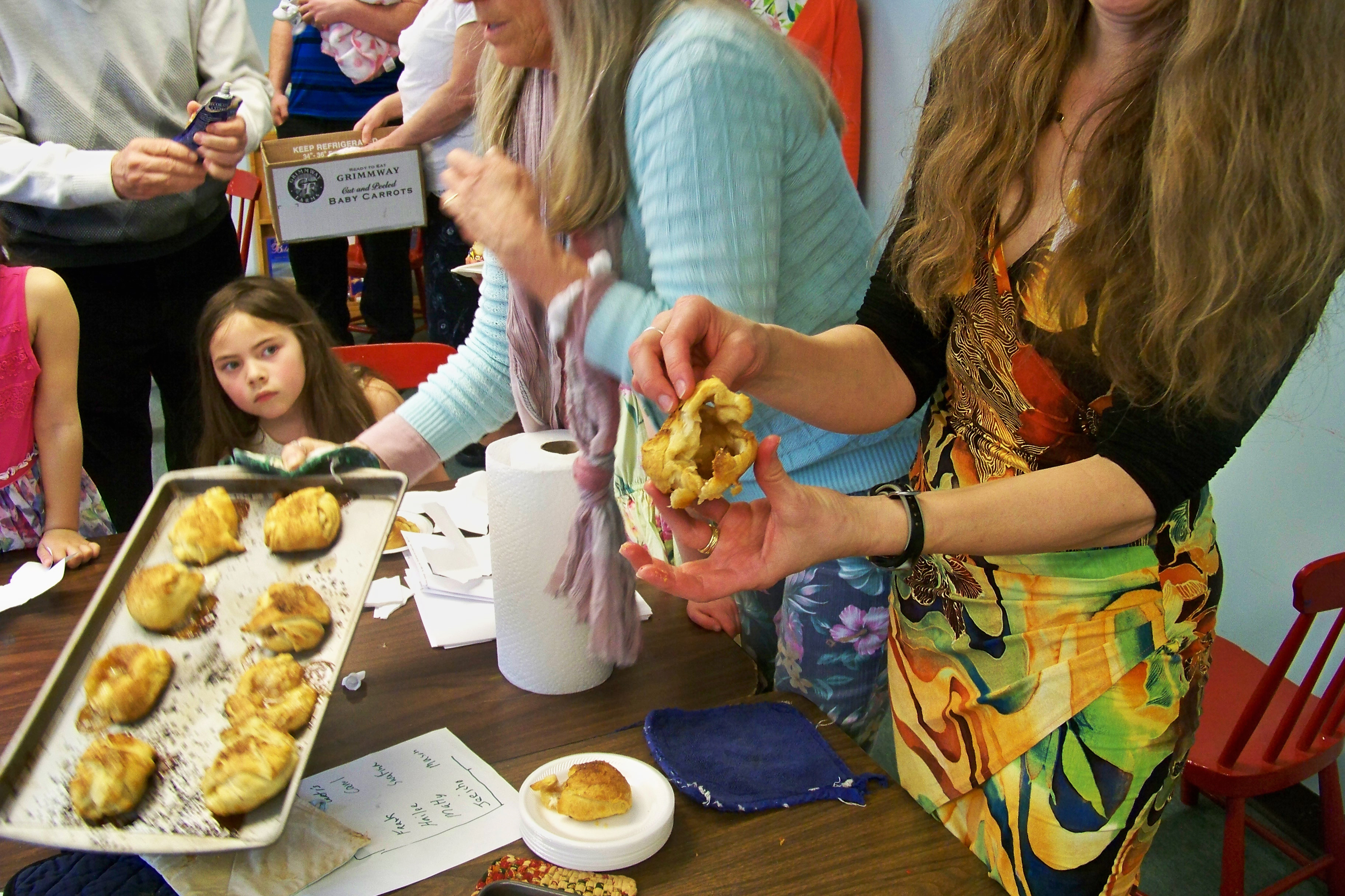The rolls were then placed in the oven to bake. When they were done, each child was told to break open the roll.