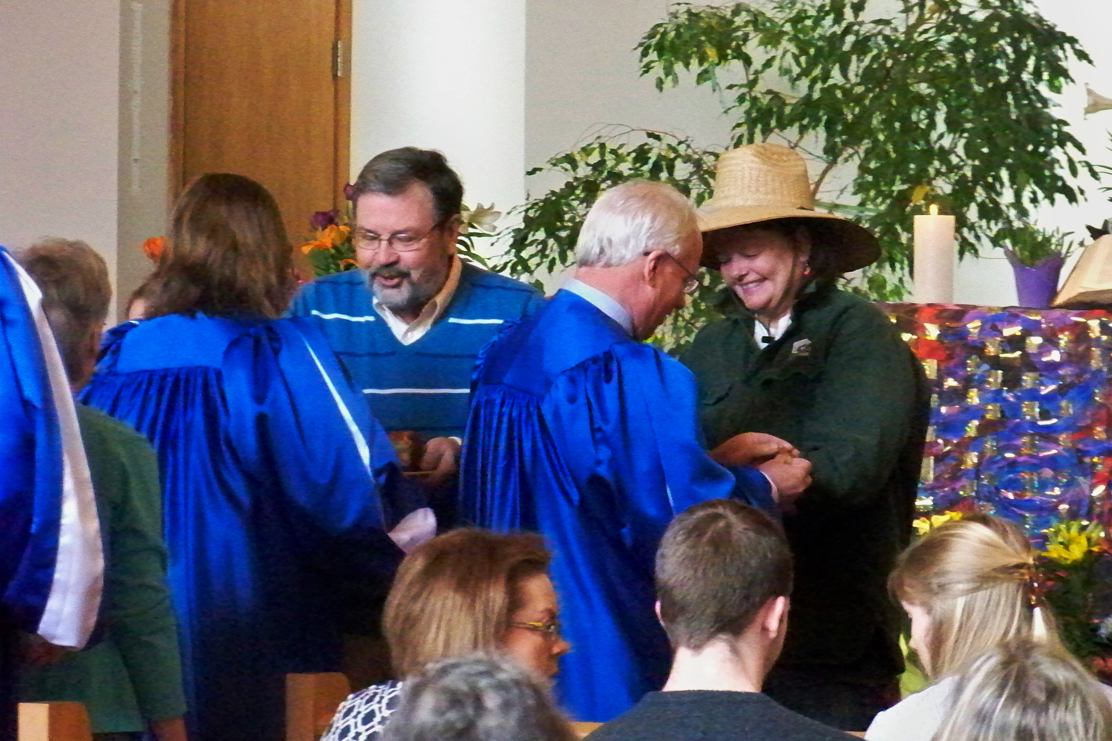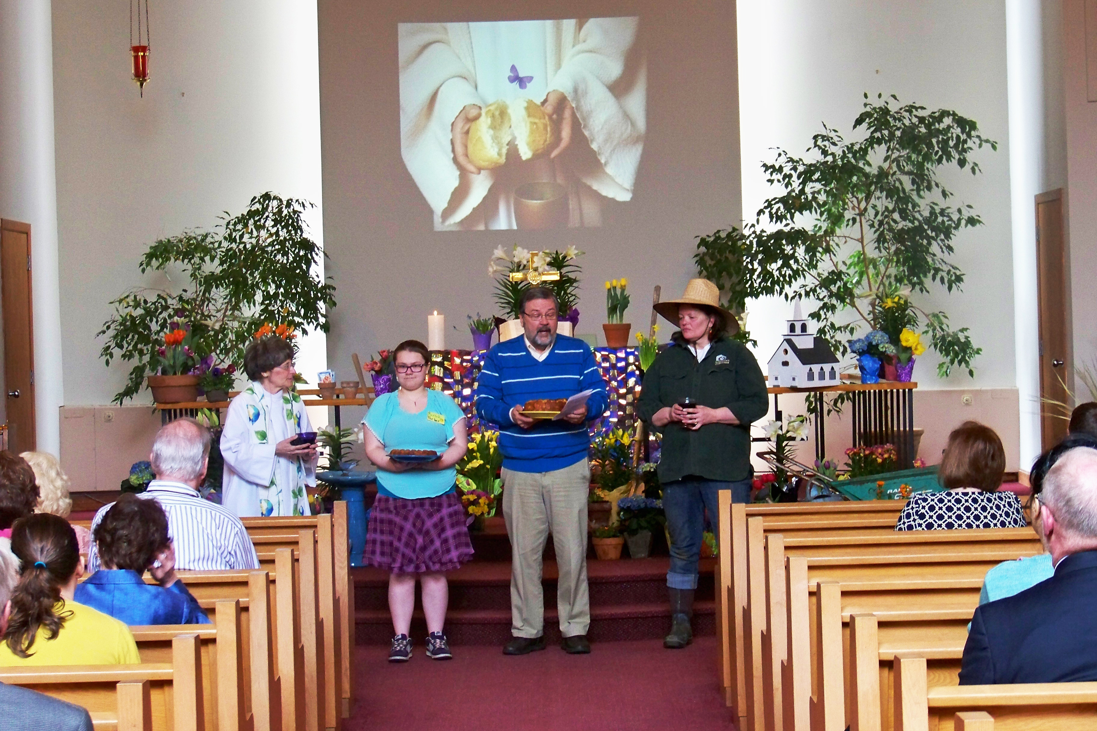 In the sanctuary service, the gardener also was one of the Communion servers.