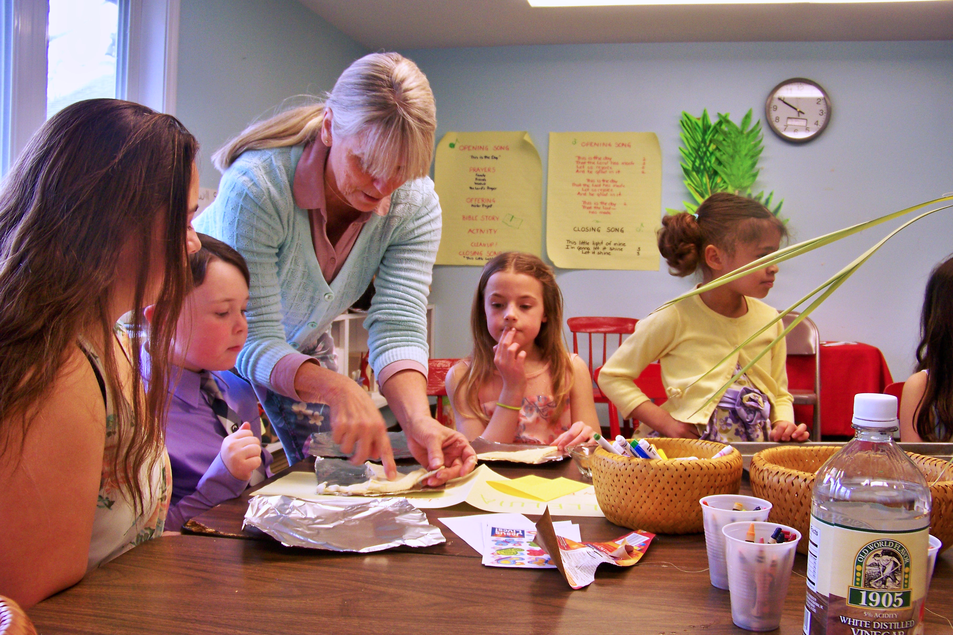 Also on Easter morning, Carol Hubbard and Deanne Burr led the Sunday School children with a lesson about the resurrection and the empty tomb. After telling the story, Carol and Deanne worked with the children on a hands-on lesson of what they had just heard.