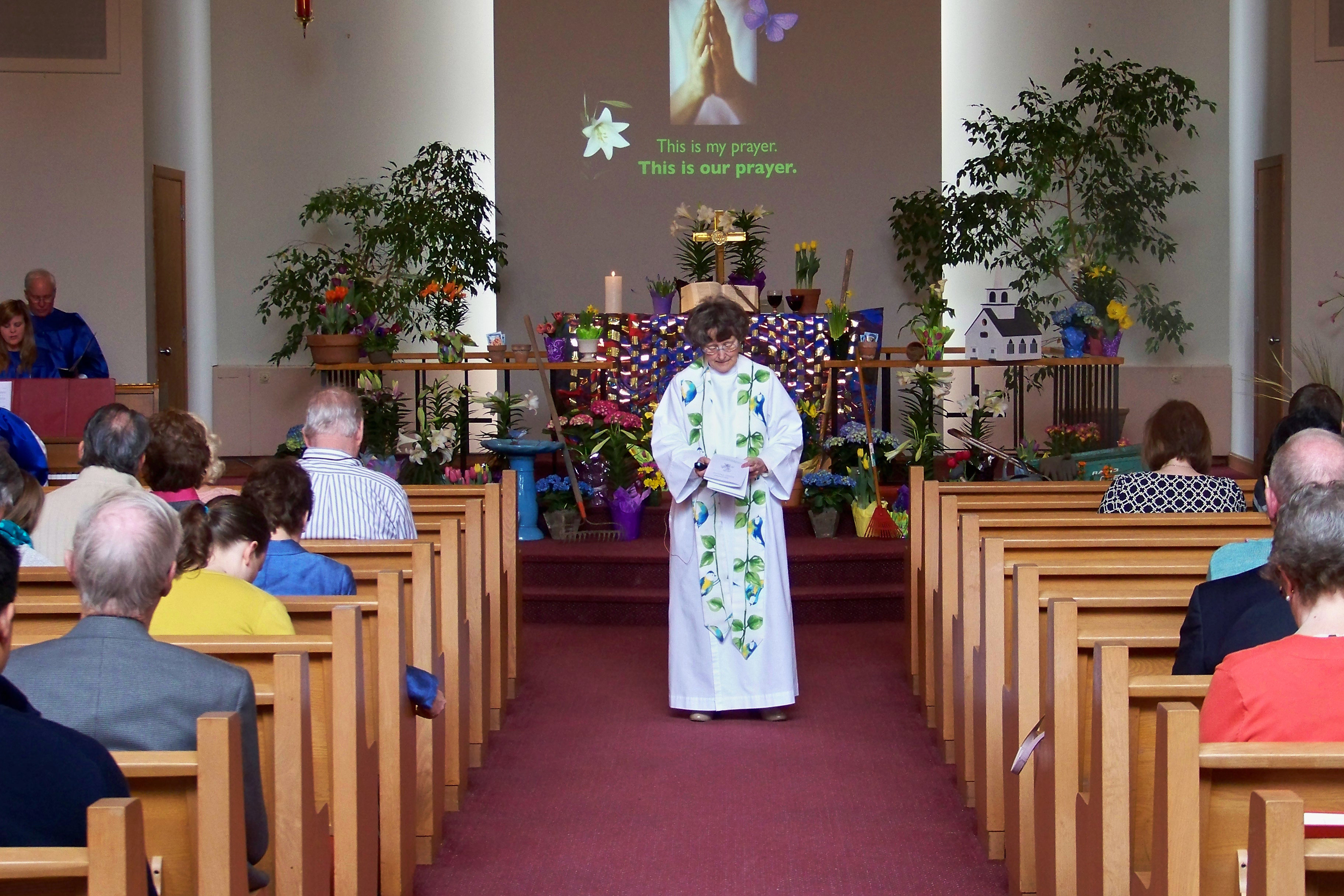 In the sanctuary, while the choir sang, she cultivated the soil in the potted plants around the communion railing. The image was one not usually seen on Easter morning, but it fit so well, it likely will not be forgotten by those who witnessed it.