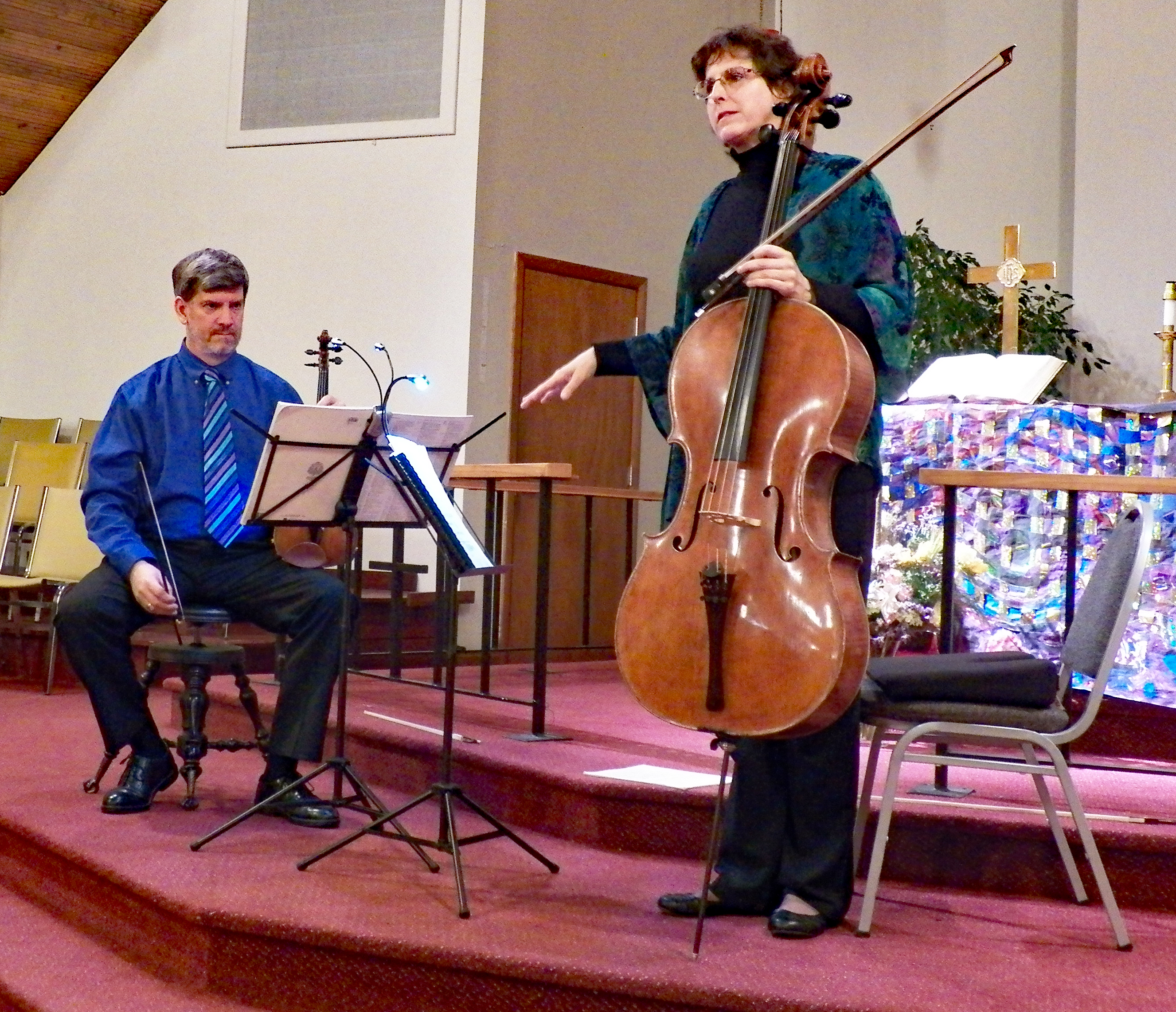 Both college professors of music, Johannes Dietrich and Marie-Aline Cadieux stopped in Cape Elizabeth for the performance as a favor to our church’s Mark Braun. Marie-Aline is the daughter of Mark’s first piano teacher when he was in the fourth grade in Minneapolis. Mark and Marie-Aline only got in touch for the first time earlier this year and the afternoon before Saturday’s performance was the first time they had met.