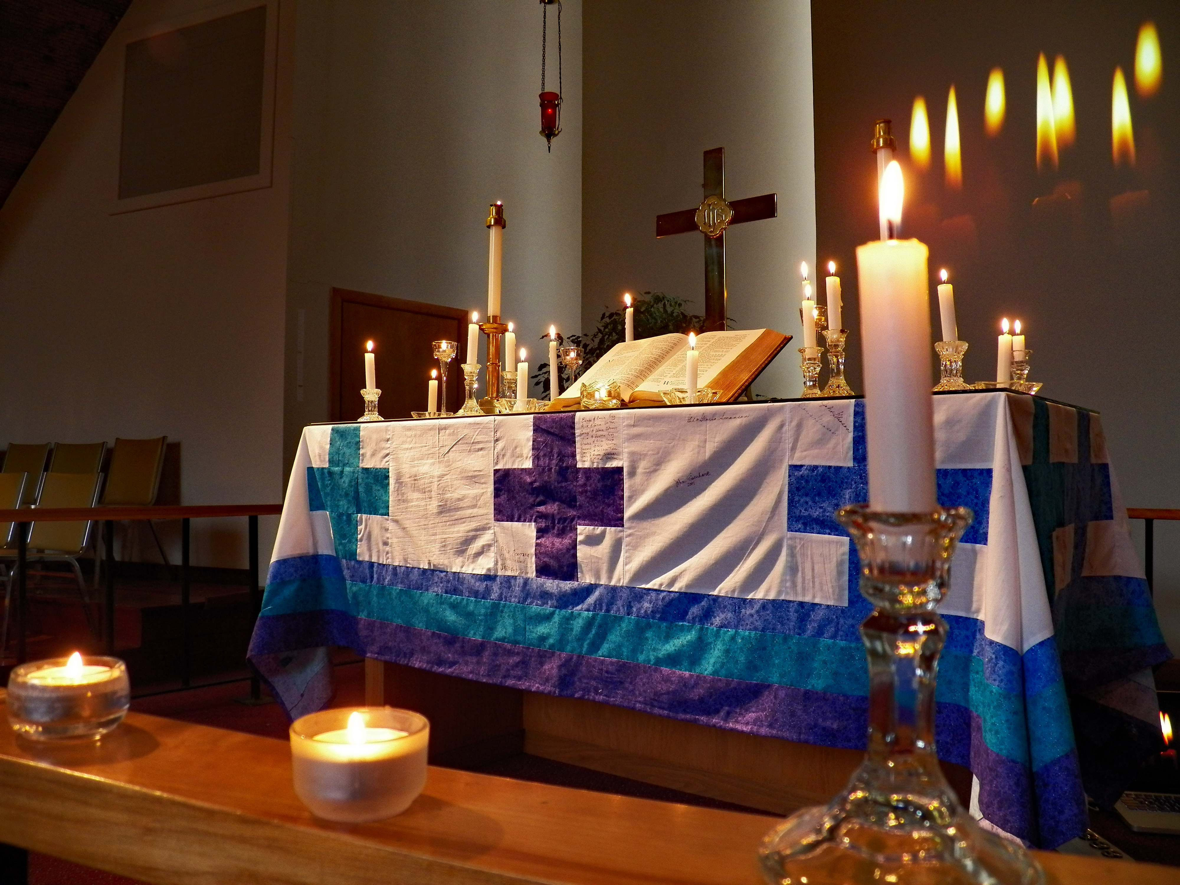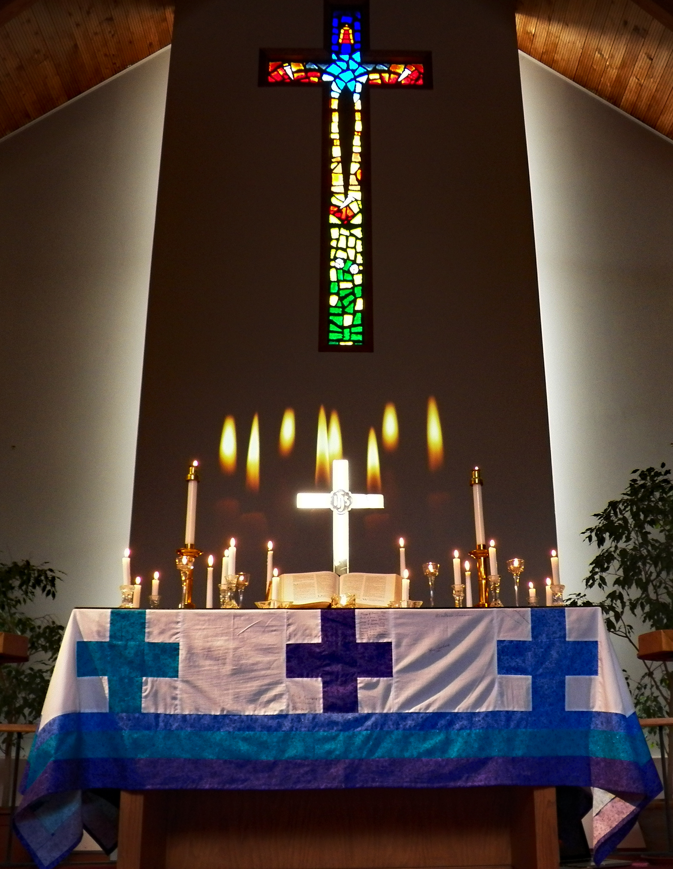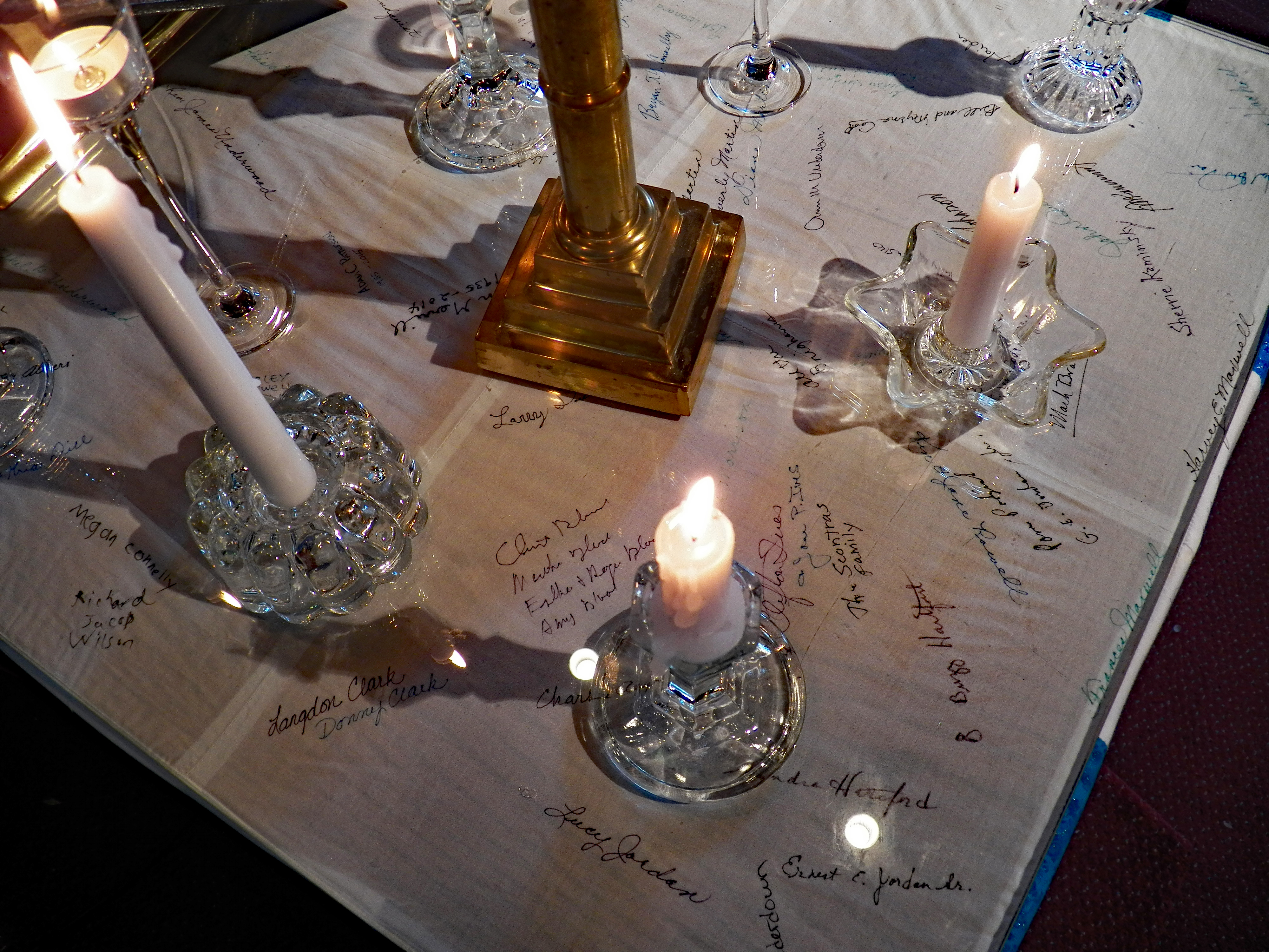During the 10 a.m. service in the sanctuary, the altar cloth displayed the names of many of our church family’s saints. The altar cloth was originally created in 2009 for the church’s 150th anniversary.