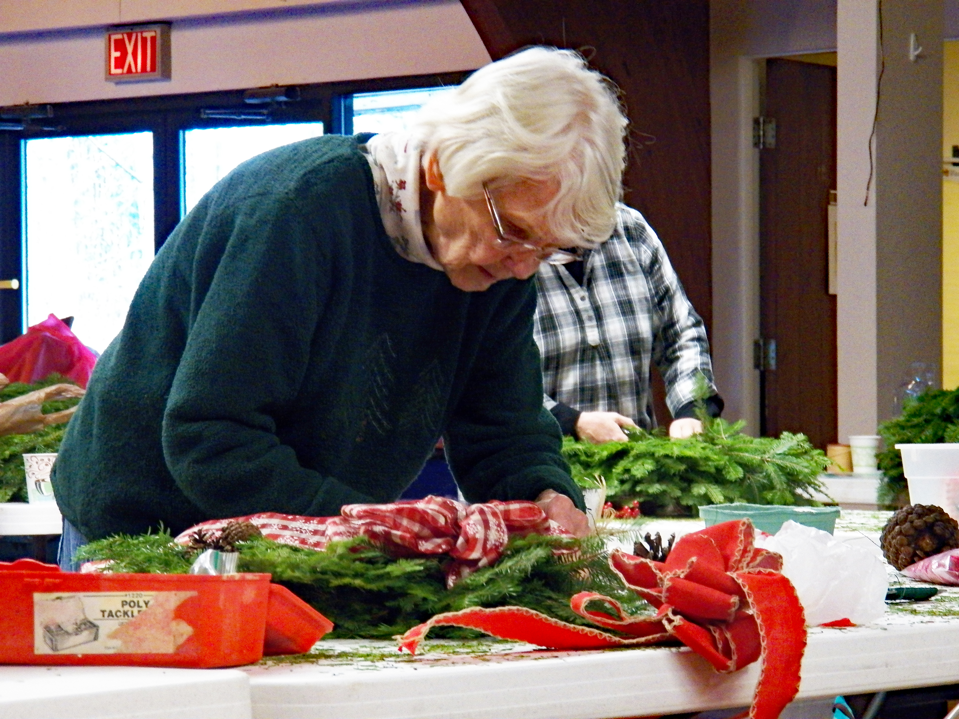 Shirley Maxwell coordinated this year’s decorating of the wreaths, taking over for Audrey Jordan, who had coordinated this special event for many Decembers. While Audrey was not able to coordinate the whole event, she was still there, decorating wreaths as she always has.