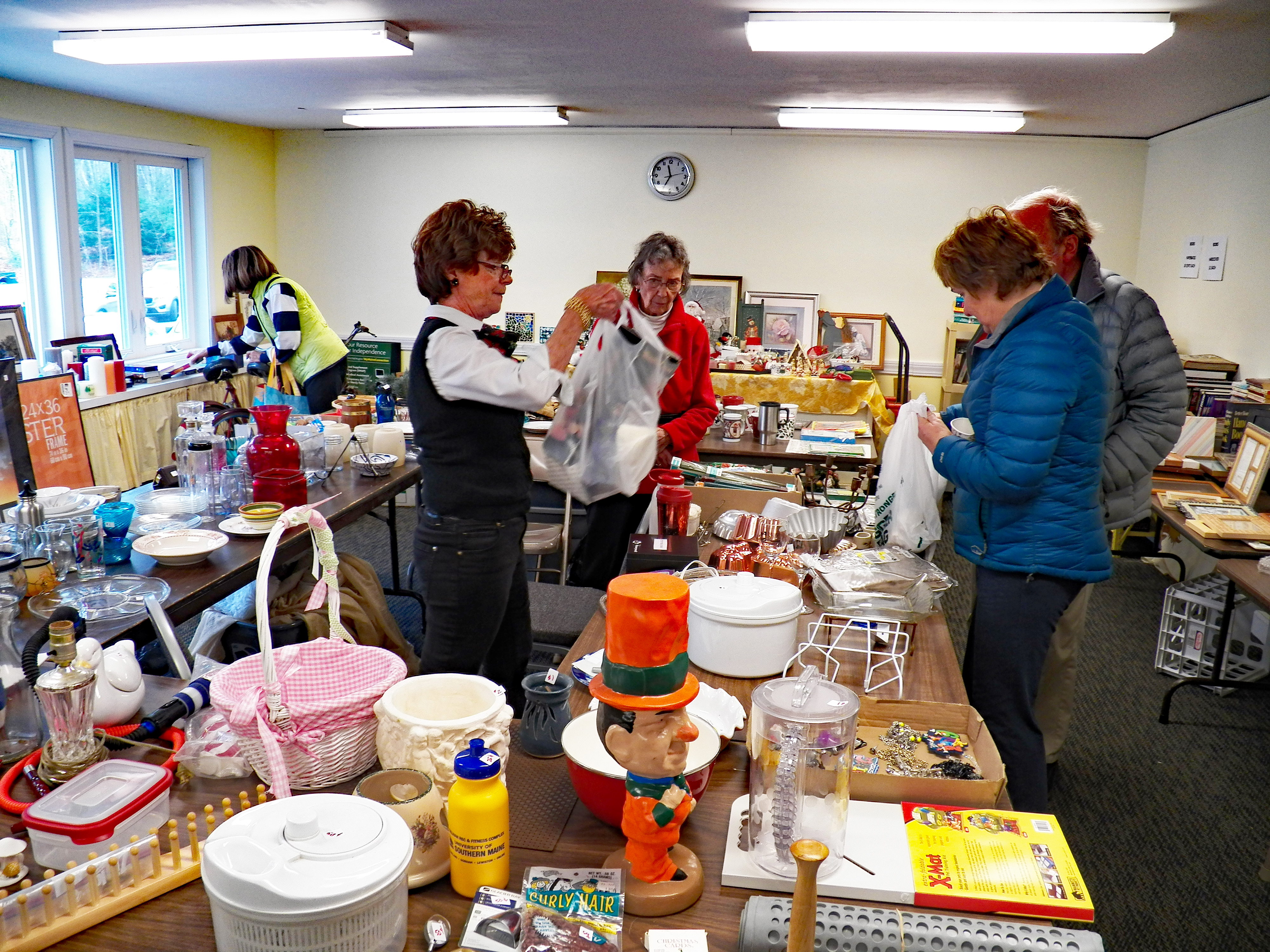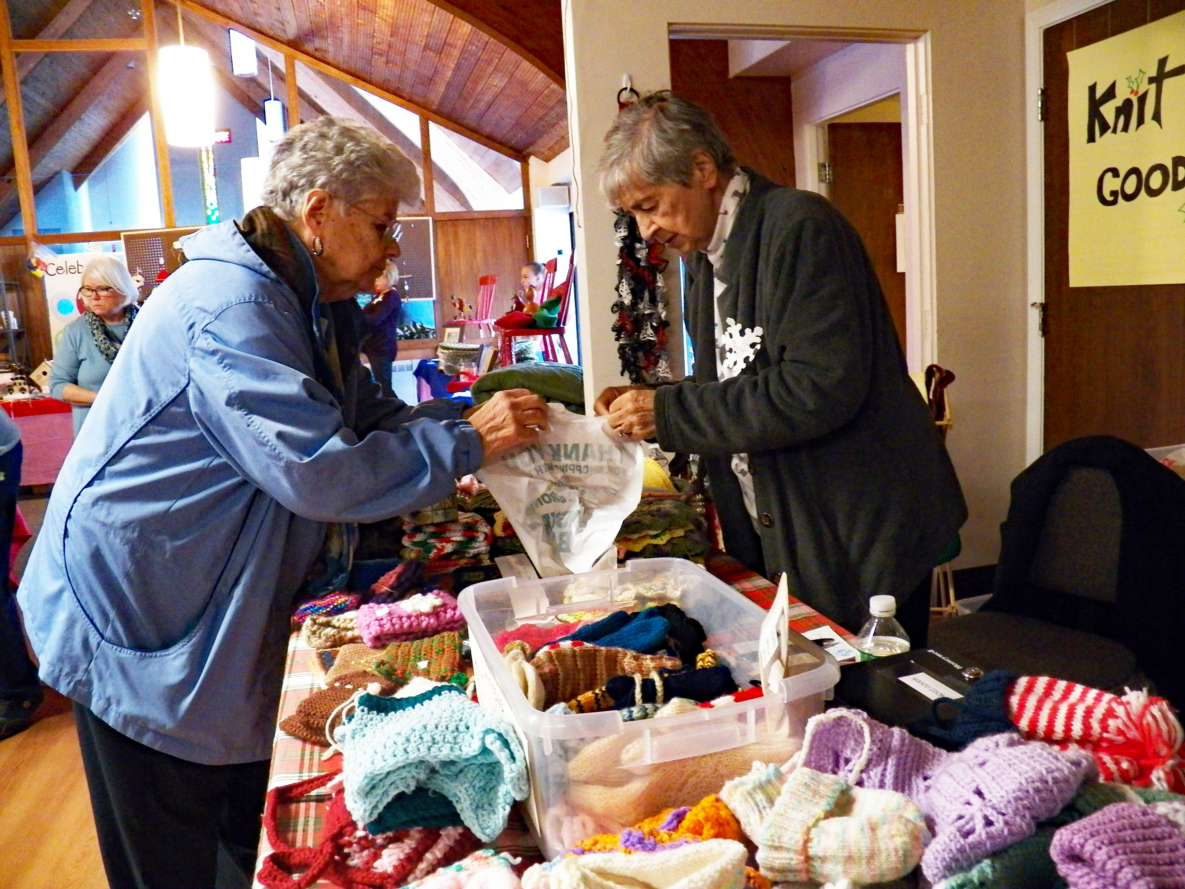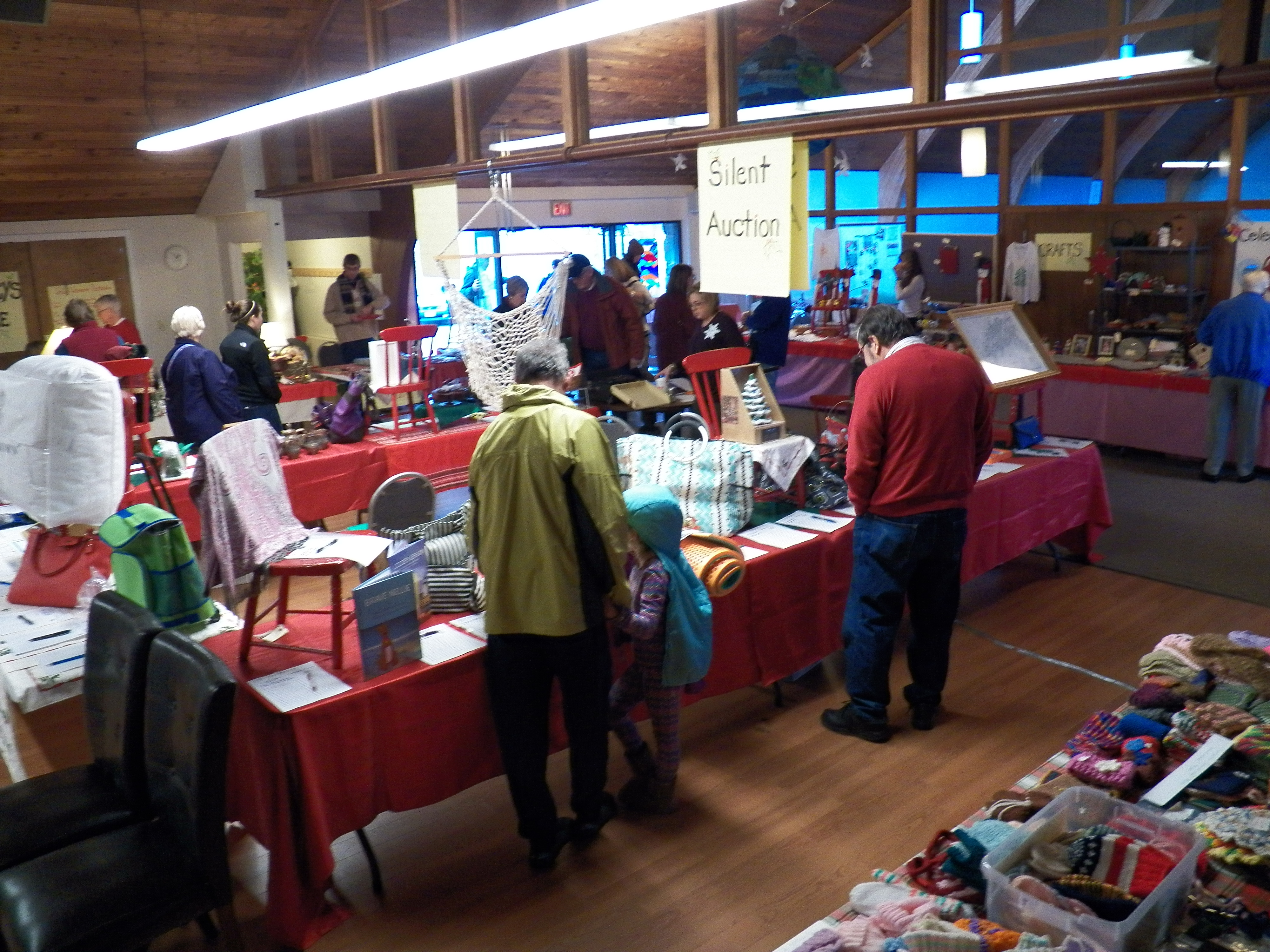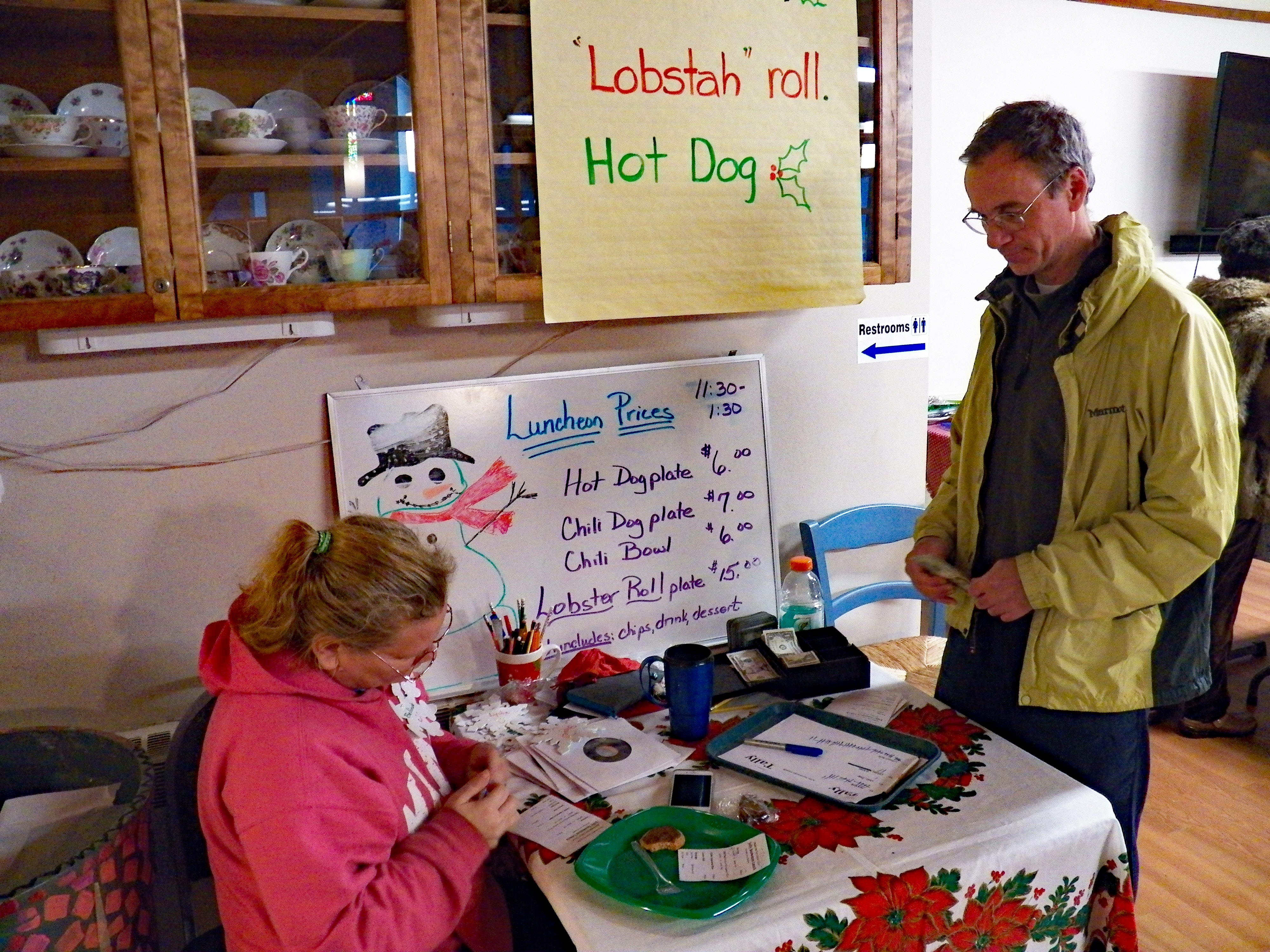 It was a festive day at the fair, starting with hot cider being served by the Rev. Ruth Morrison to anyone entering the front door. Then came tables filled with homemade crafts and decorations, comforting knit items, cookies, candies, cakes and pies. The lobster roll/grilled hot dog luncheon provided a great break for all visitors and volunteers and the scent of fresh pine wafting out of the wreath room was, yes, heavenly.