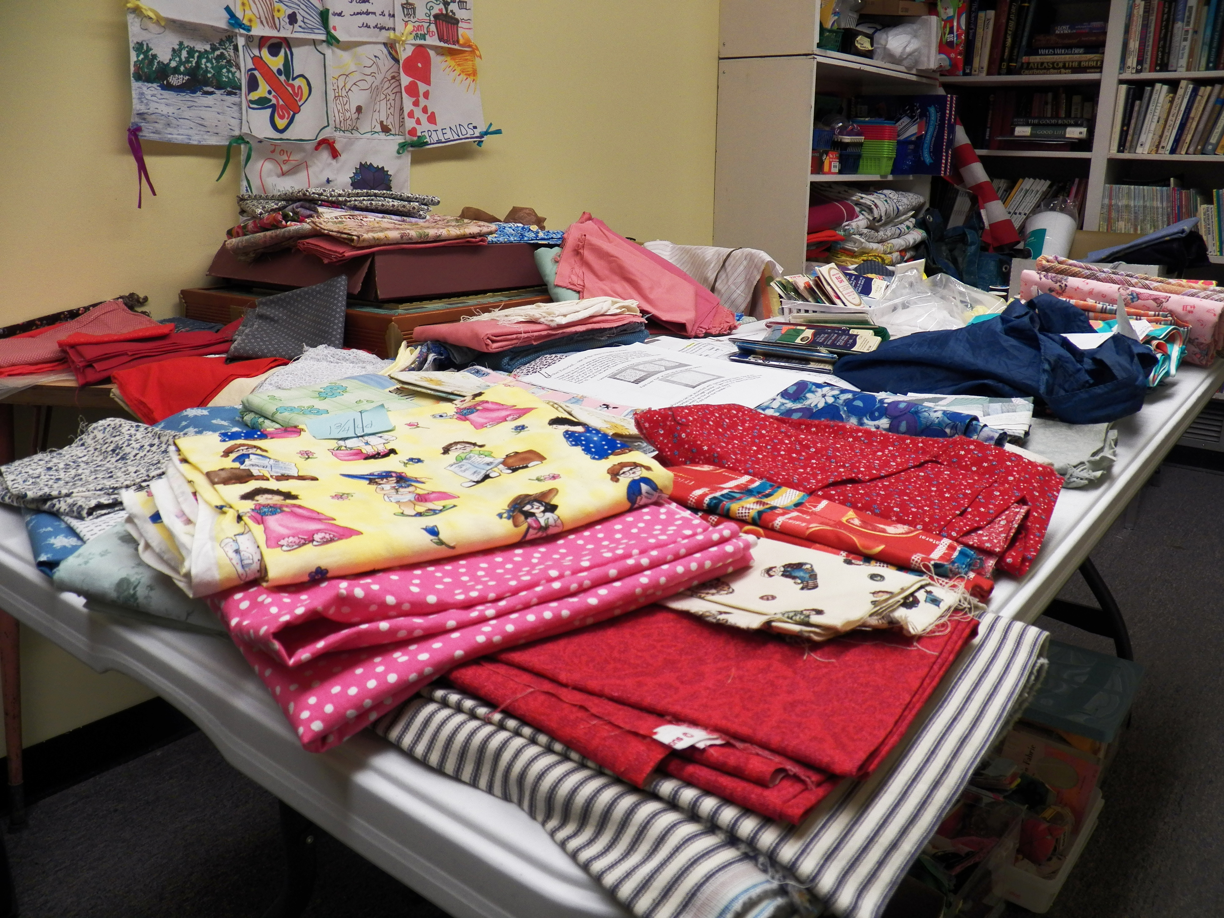 Before this week’s session, a women from Scarborough, who is not a member of the church, saw a story in the newspaper about our church’s dress mission and created a dozen dresses on her own and then gave them to the church, along with additional fabric.