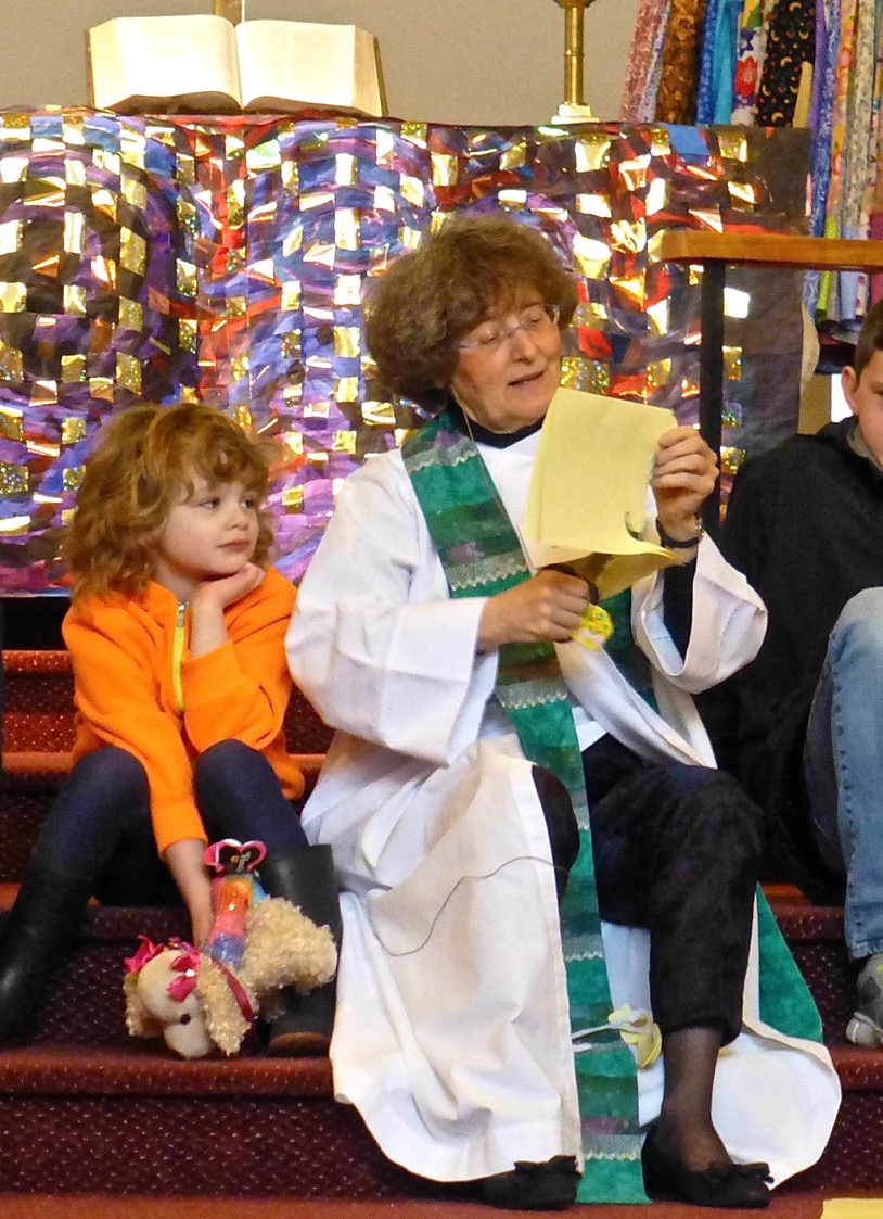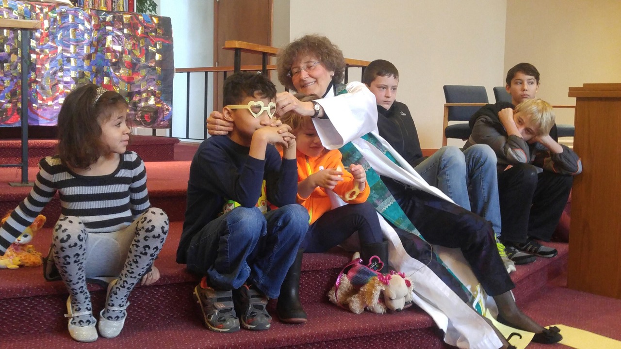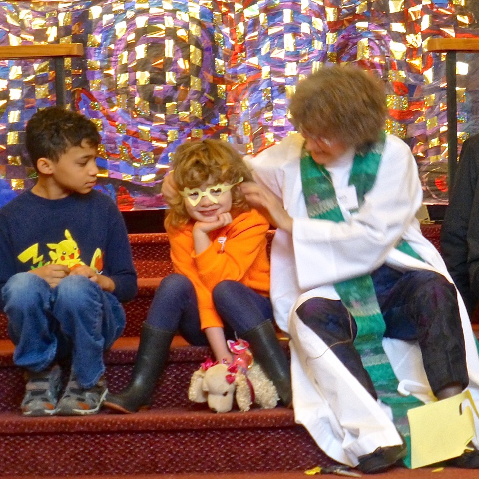 For the Children’s Story on the Sunday before Valentine’s Day, the Rev. Ruth Morrison talked to the children about love and life. Throughout her conversation, she was intricately cutting out heart-shaped paper glasses and placing them on the children’s faces.