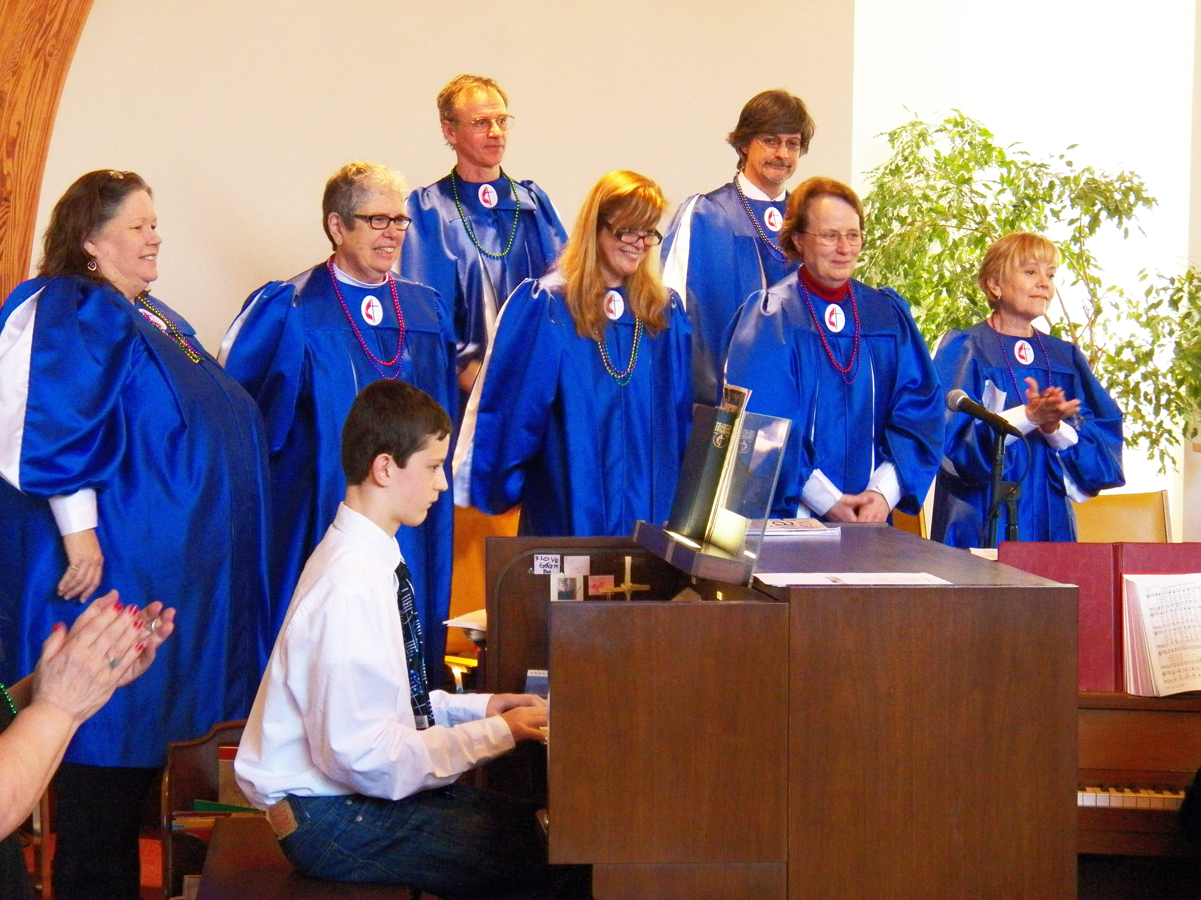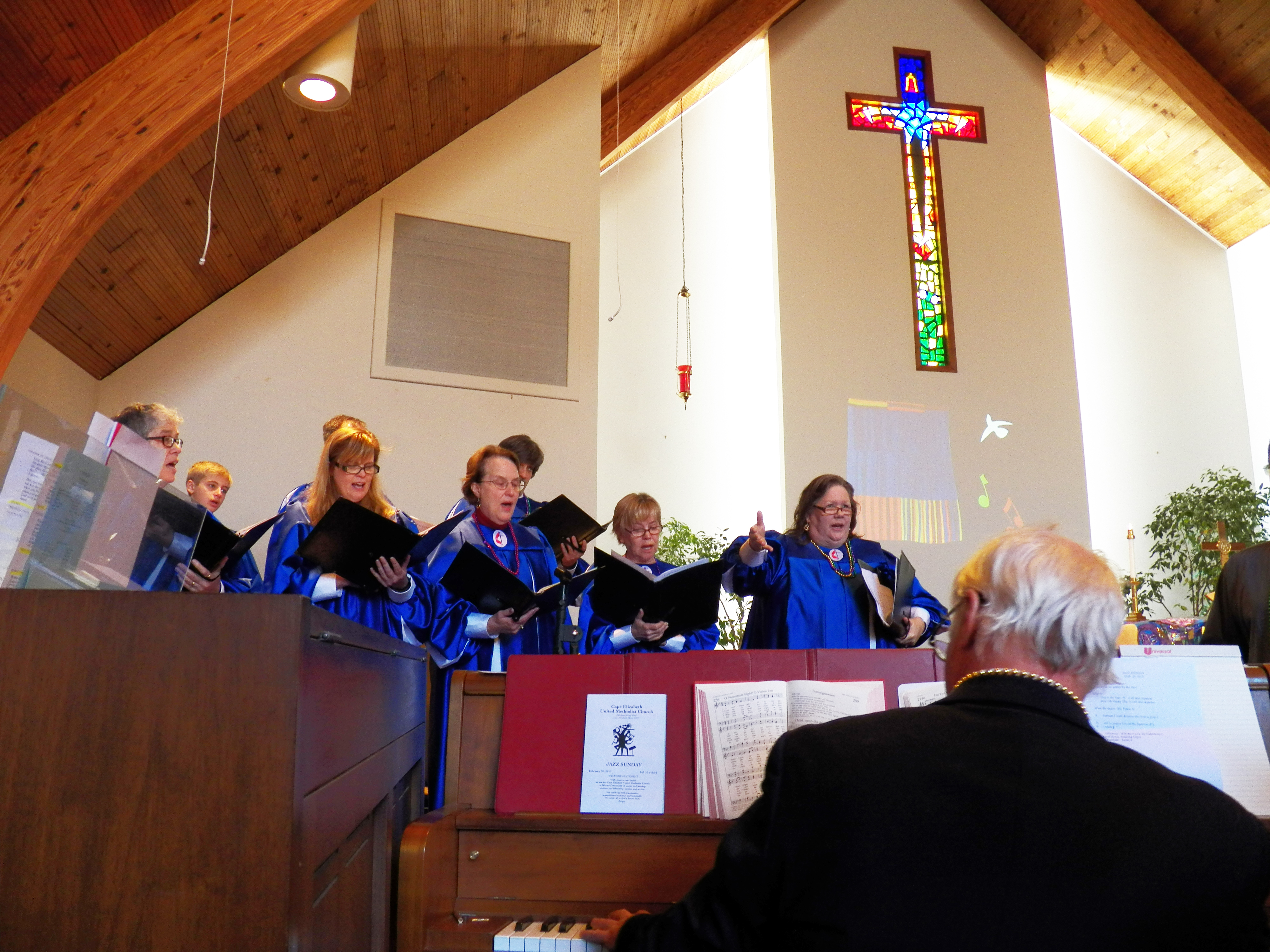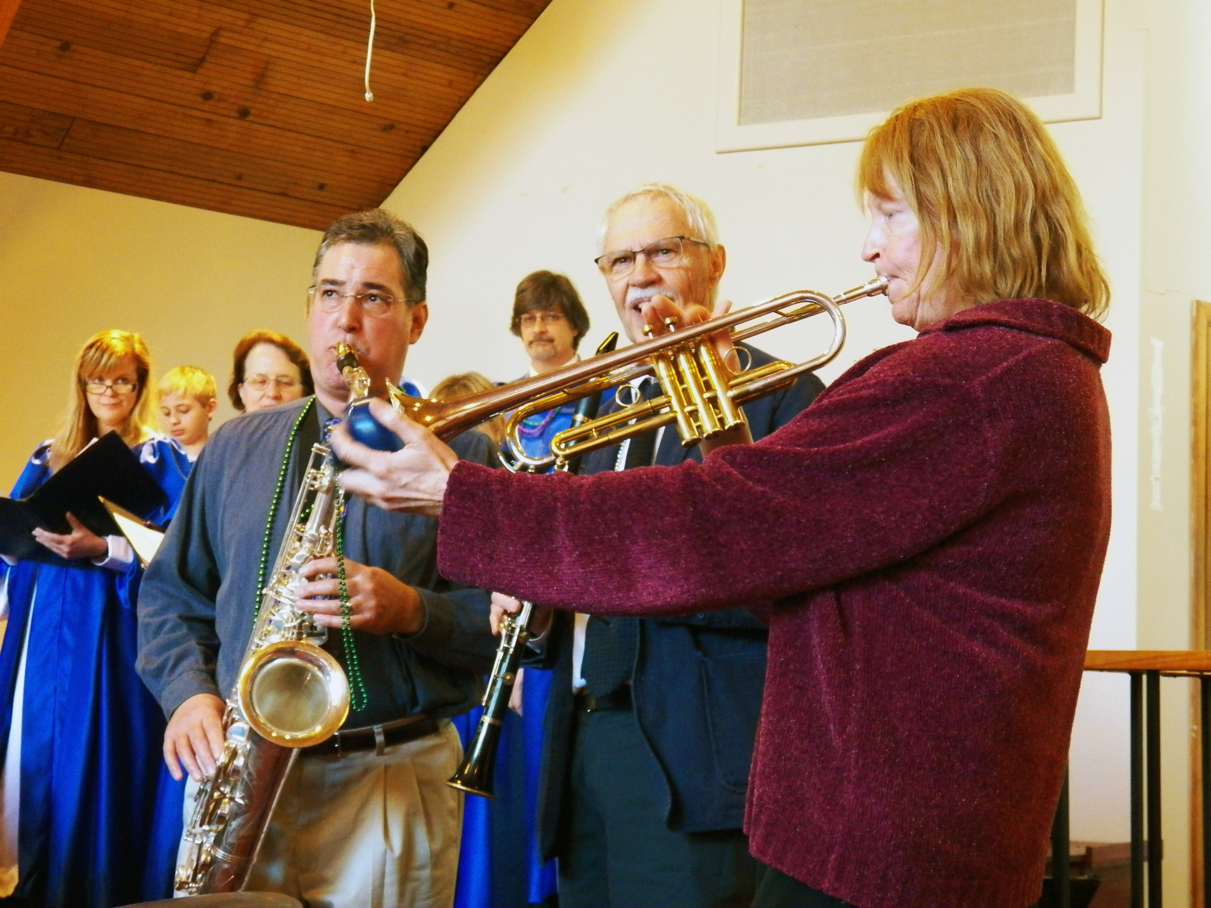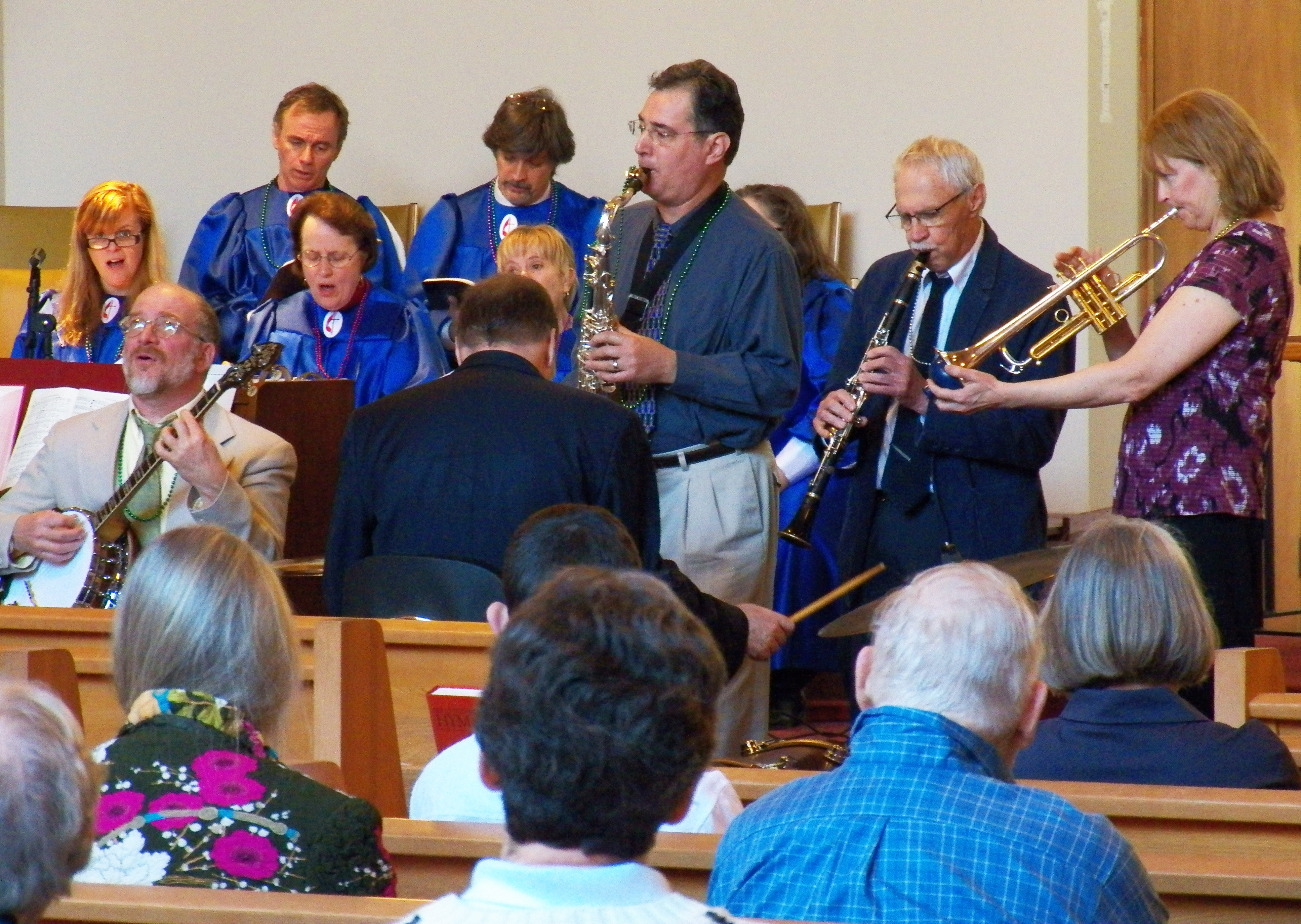 And complementing every blast from Michele Kingston’s trumpet and every strum from Peter Dumphy’s banjo, our choir, led by Faith York, was was in high spirits, as was the organ playing of Gail Parker and Tyler Roddenberger, who helped rock the Sanctuary when the rest of the musicians let loose with “When the Saints Go Marching In.”