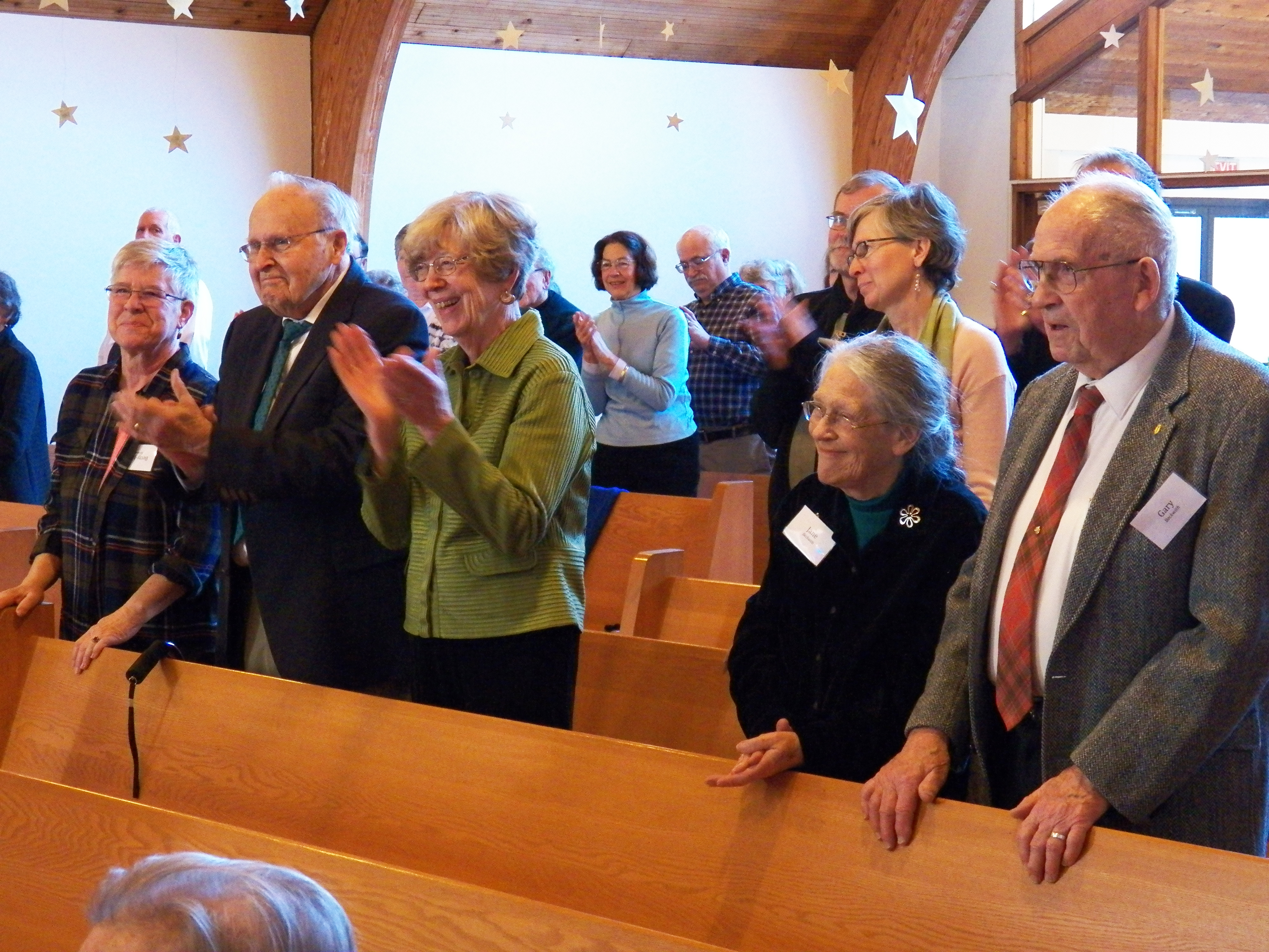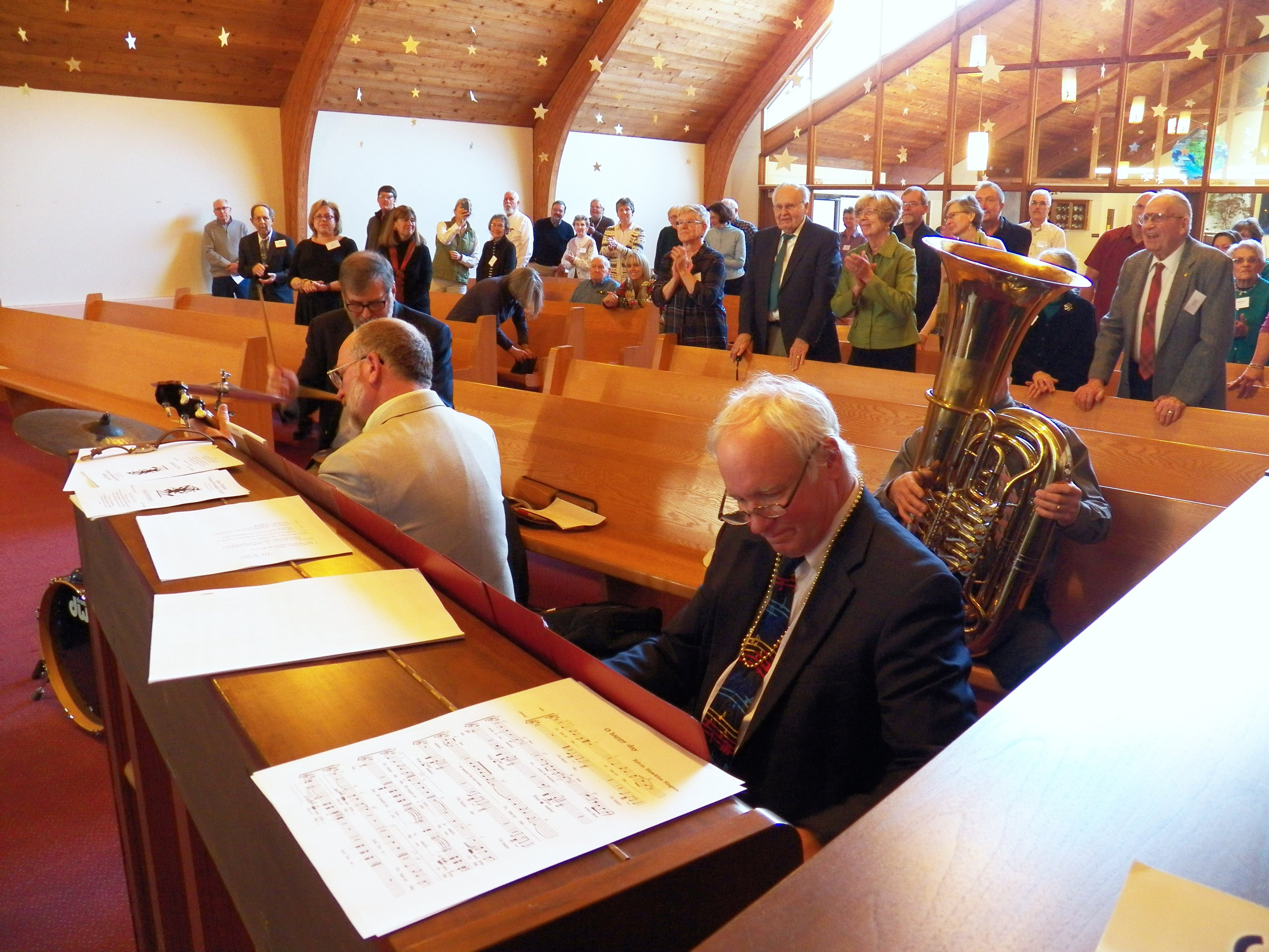 But it wasn’t over. Paul then asked Pastor Ruth if she wanted a turn. She admitted it was “something I’ve always wanted to do” and it wasn’t long before the cymbals rang out from Ruth’s repeated raps with Paul’s sticks. With this being Pastor Ruth’s last Jazz Sunday before her retirement in June, her last cymbal crash was a fitting end — and the congregation applauded.