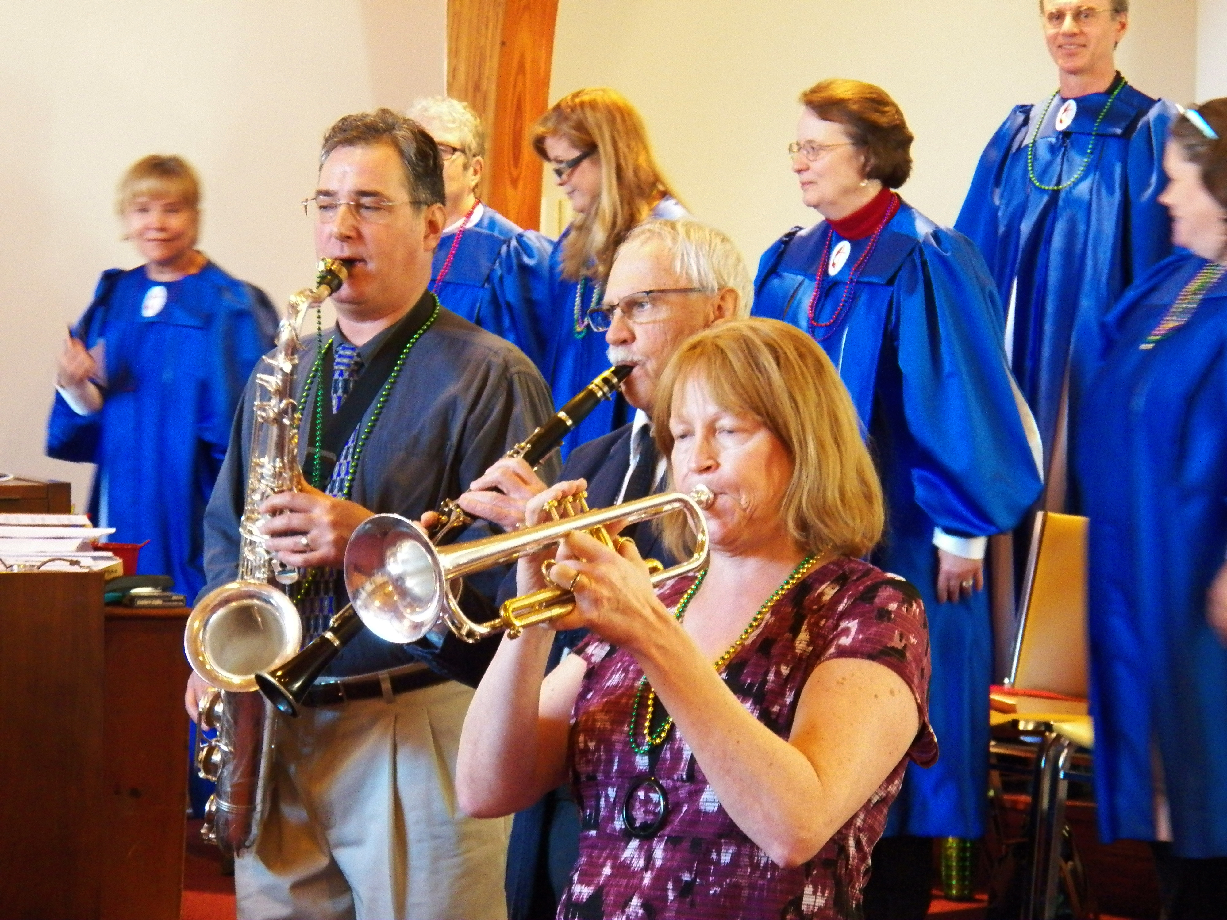 As for the rest of the morning, Stephen Bither’s collection of talented musicians provided every form of Mardi Gras-style jazz imaginable, playing before, during and after worship on this last Sunday before Lent.