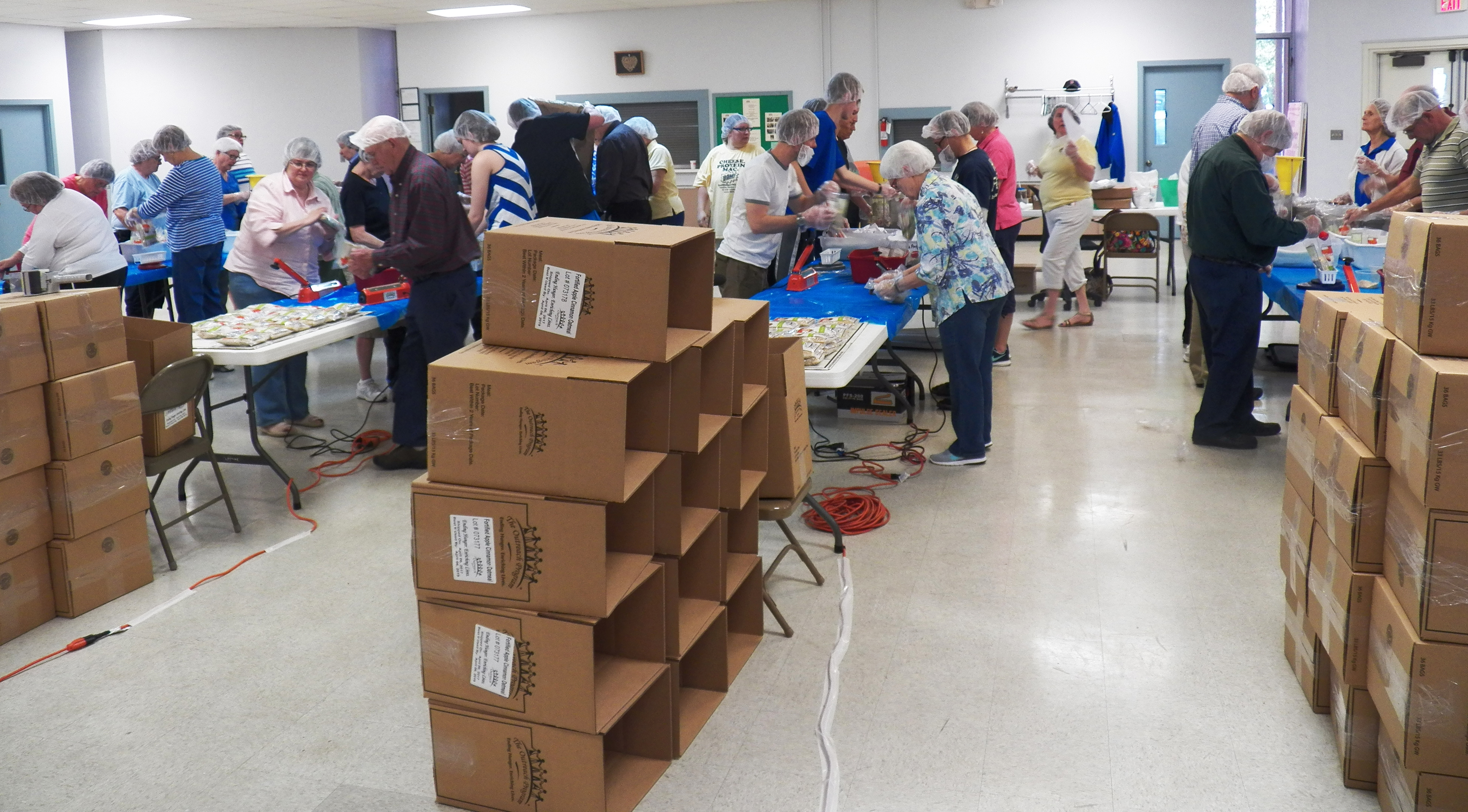 On April 29, 64 people — including seven from our church — gathered at the Peoples United Methodist Church in South Portland to assemble breakfast pouches that will be distributed to individuals and families in need in Maine’s Cumberland and Penobscot counties.