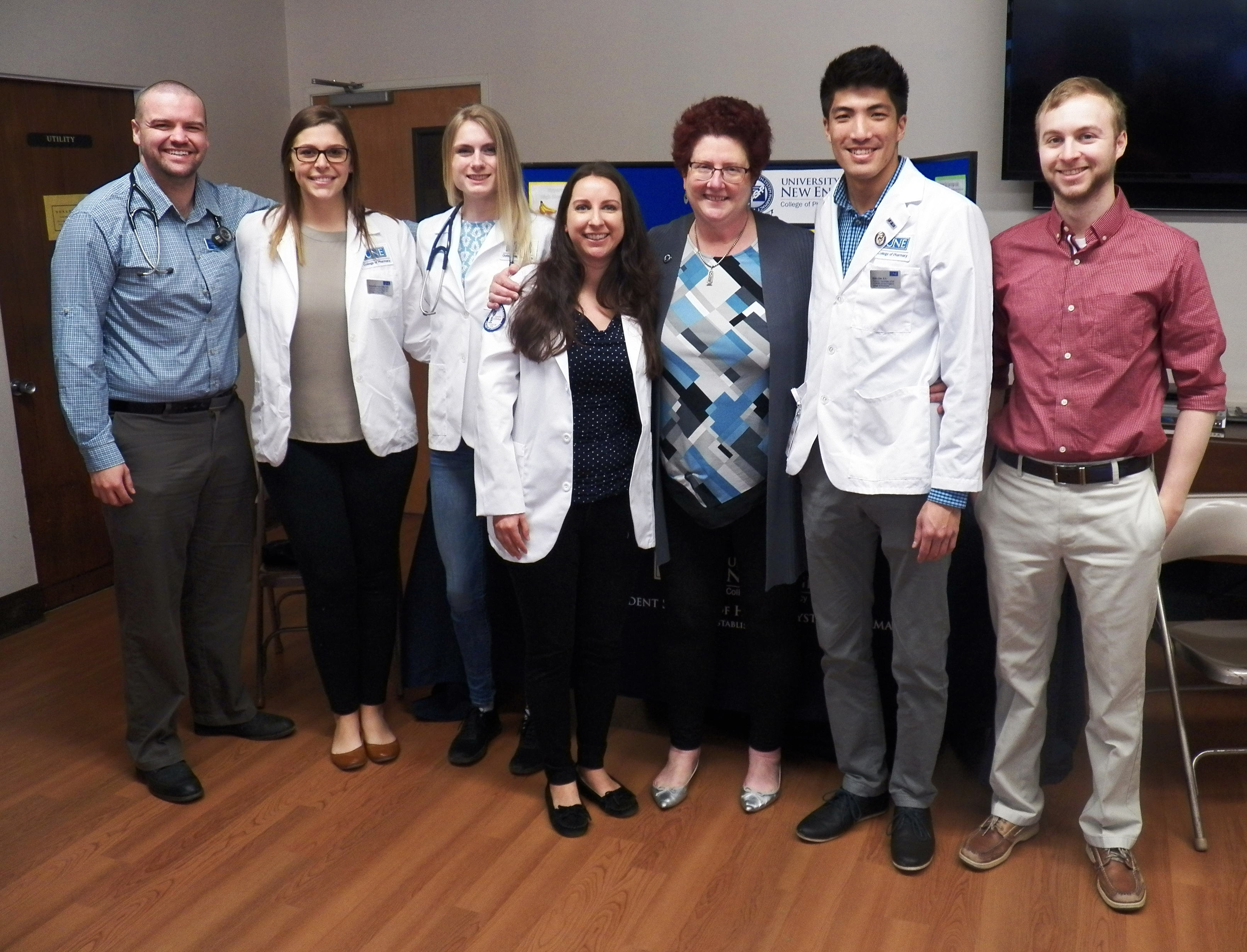 Members of the UNE College of Pharmacy who gave church members health care information on April 30: Justin Richards (Dixfield, Maine), Alexandria Argentieri (Rochester, New York), Natalie Underdown (Cape Elizabeth), Megan McInally (Ventura, California), Dean Gayle Brazeau (Scarborough), Mark Chen (Tustin, California), Maxwell Roberts (Brunswick, Maine)
