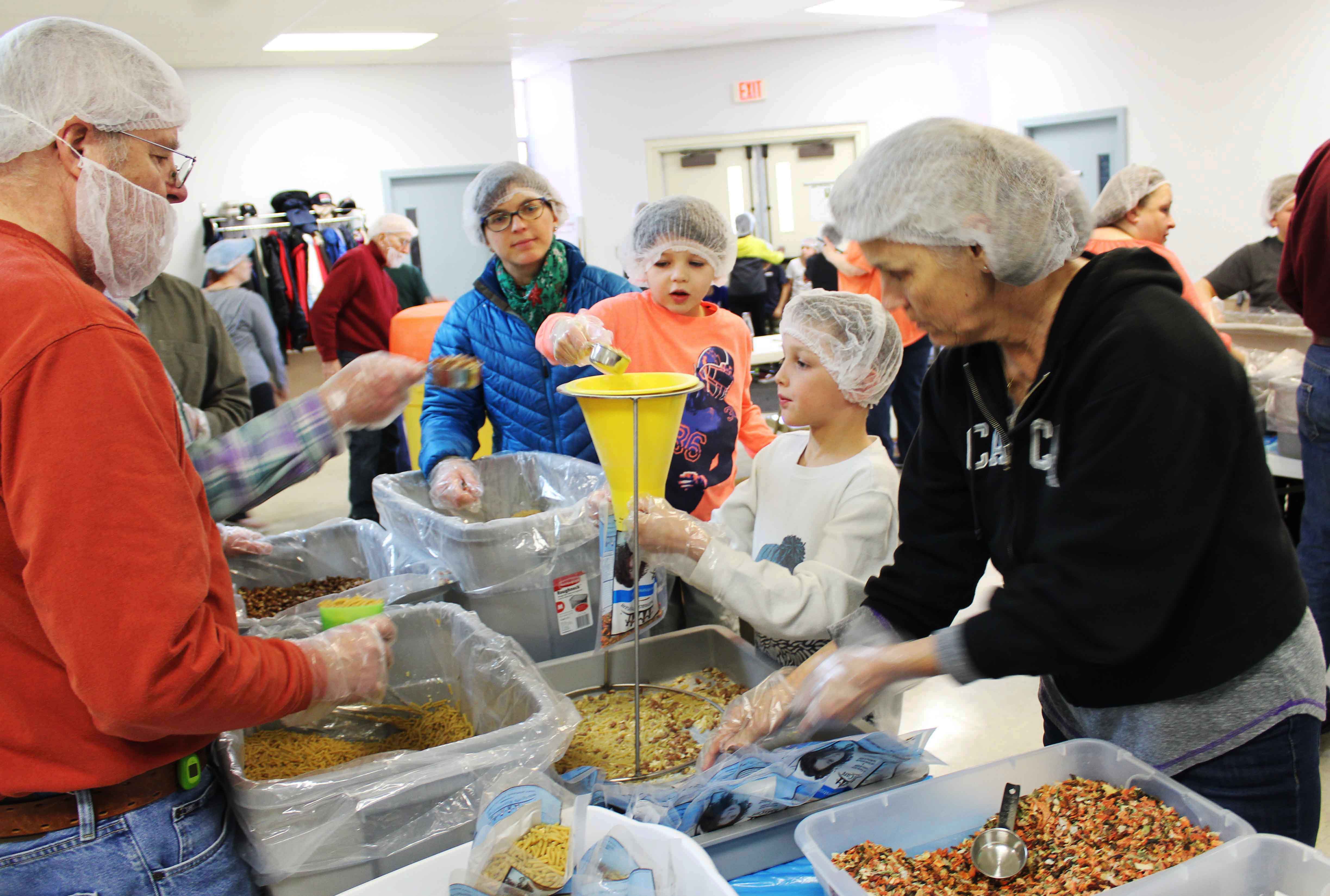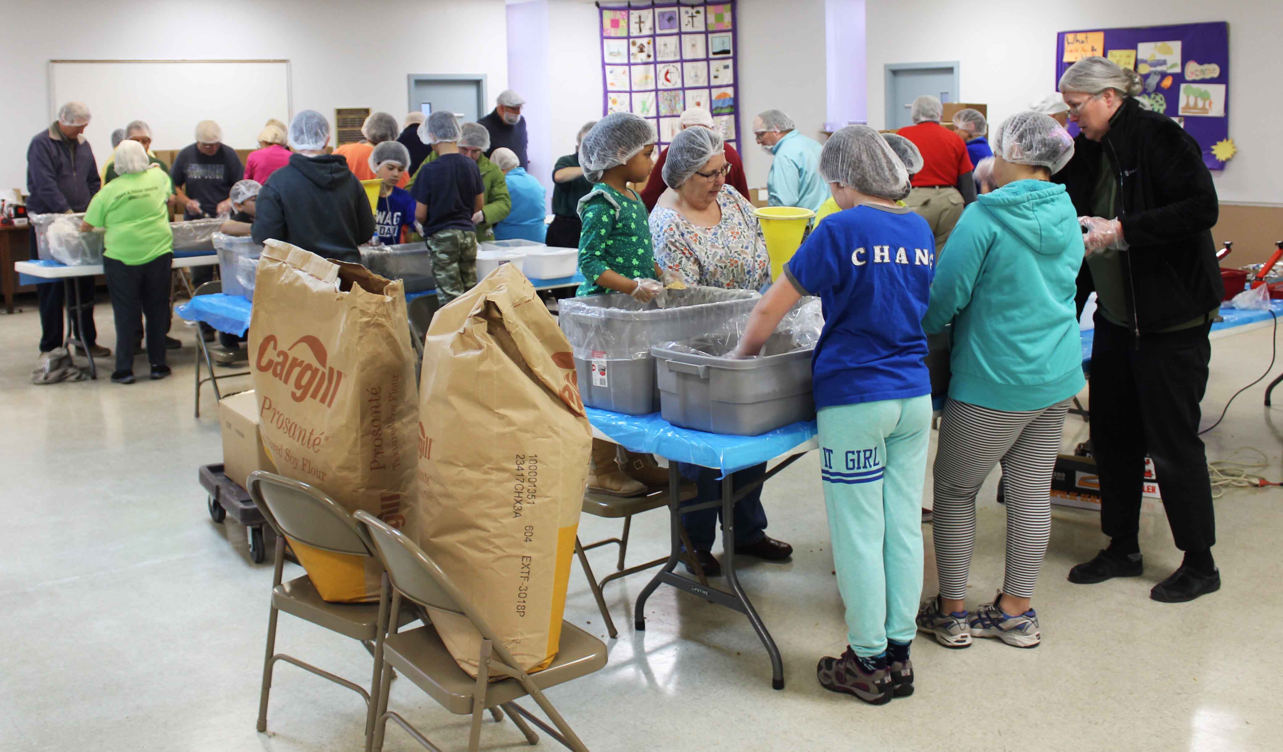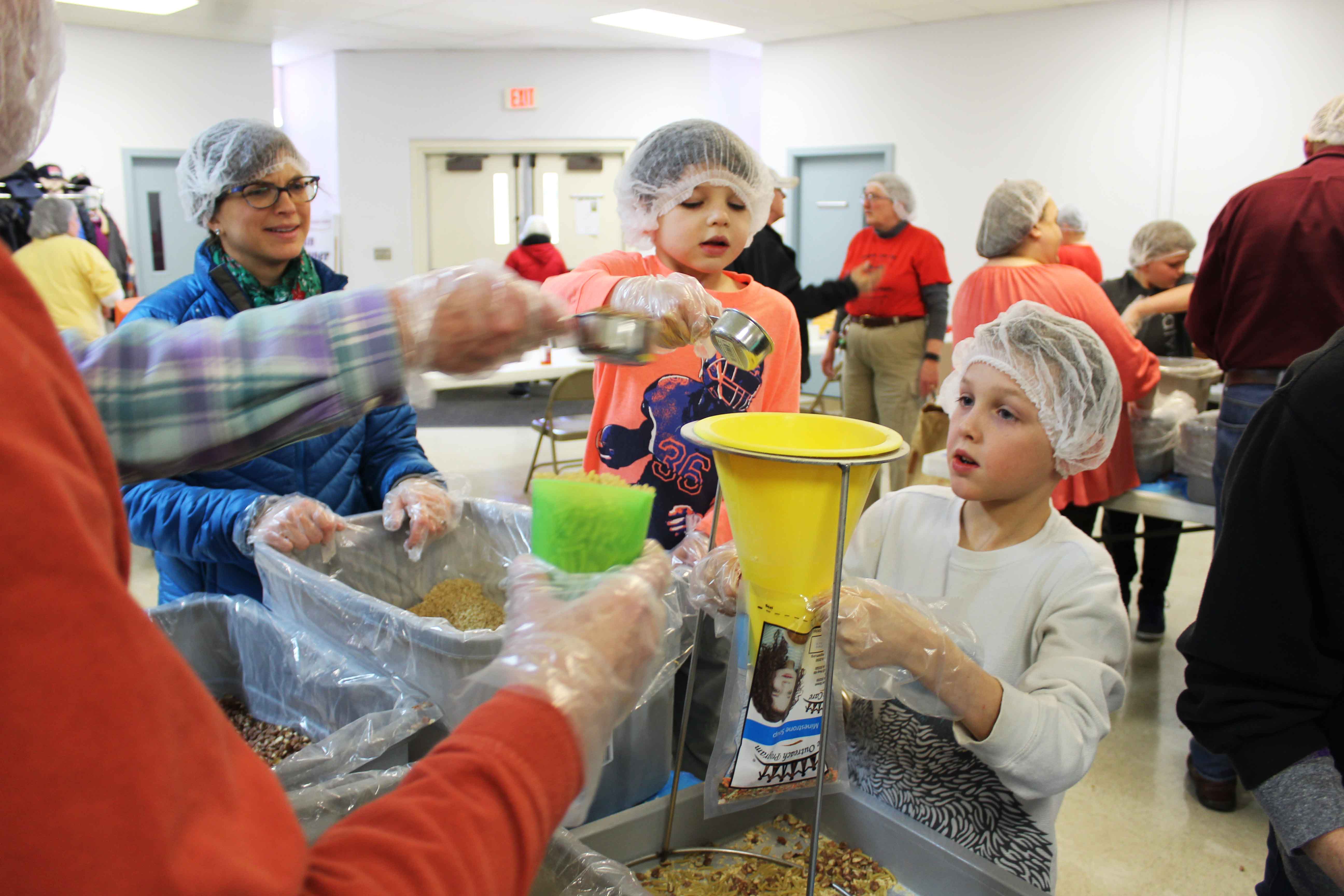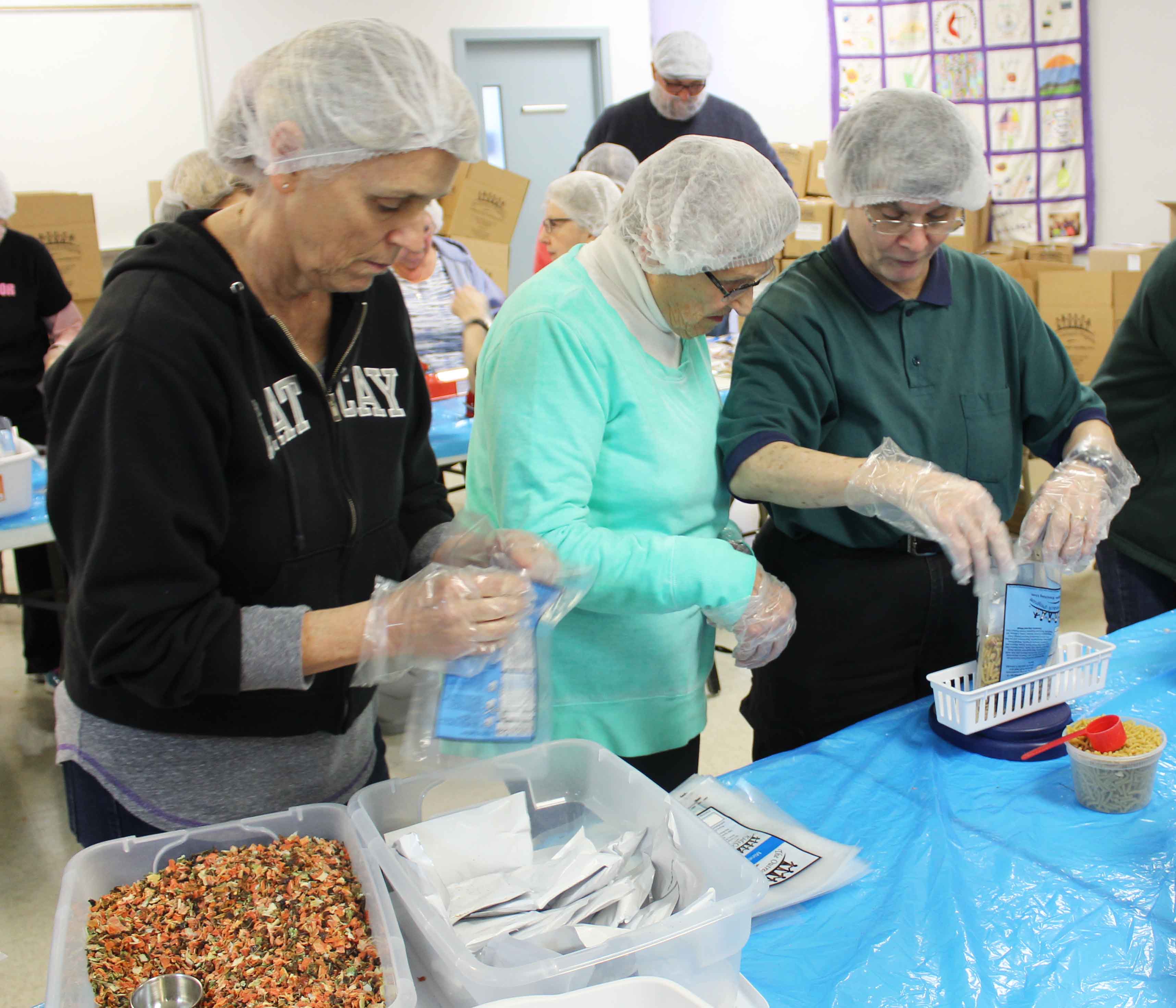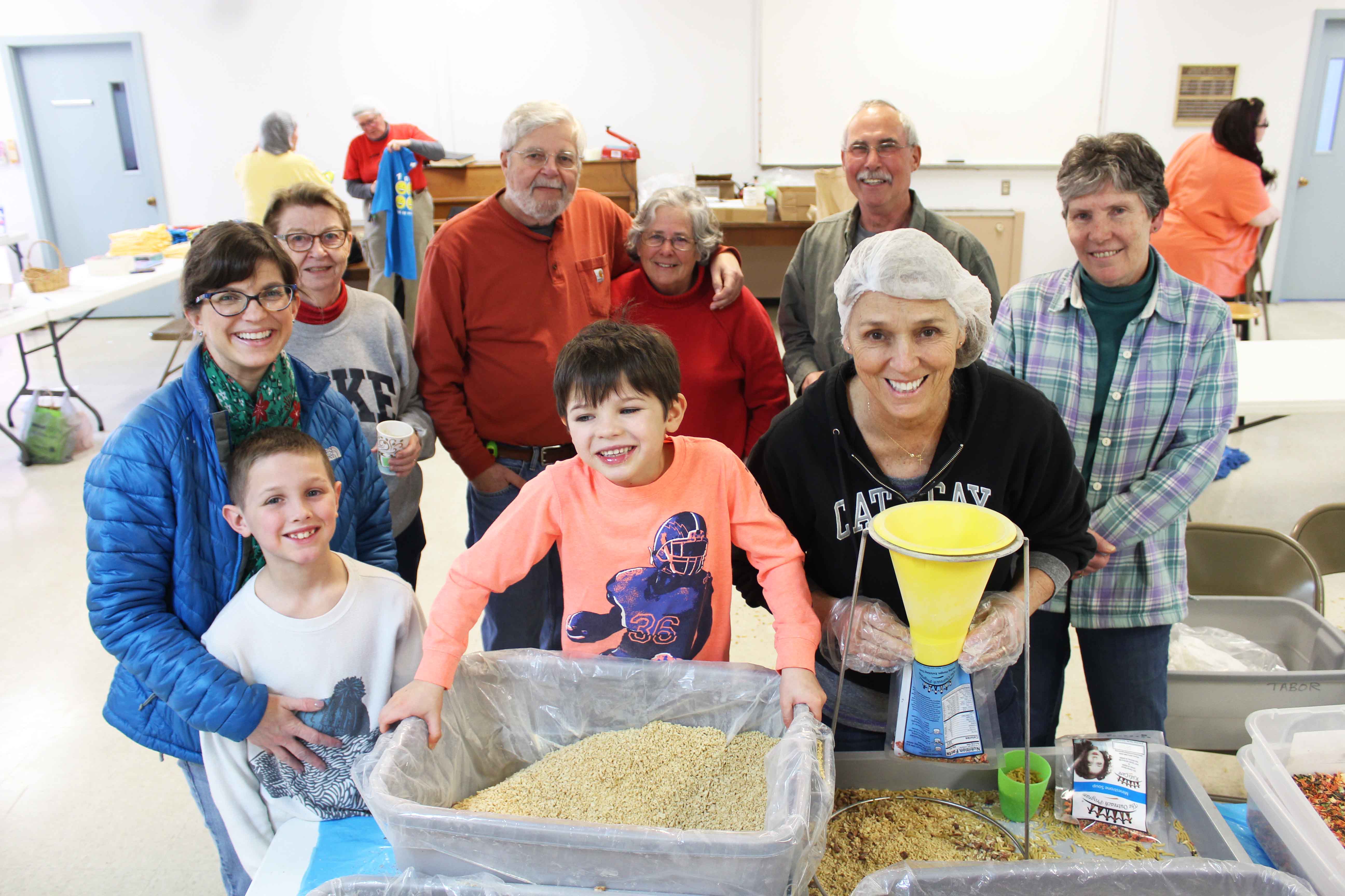 For the fifth year, our church assembled a team to help prepare vacuumed-sealed meals as part of the Casco Bay Cluster of United Methodist Churches “End the Growling” mission.
