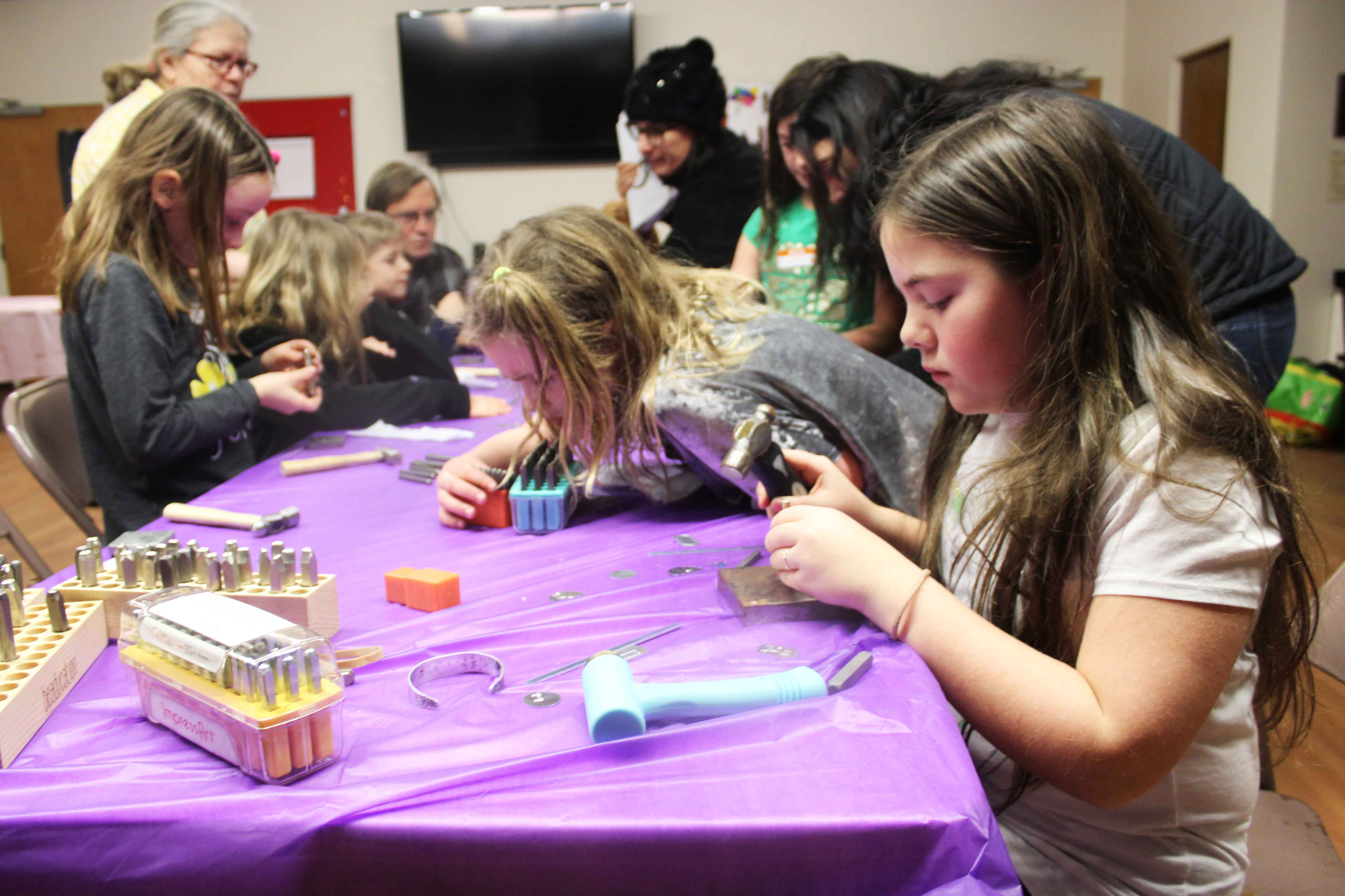 The craft project was using metal stamps to create personalized bracelets and dog tag IDs. There was a lot of hammering and a lot of creativity, too.