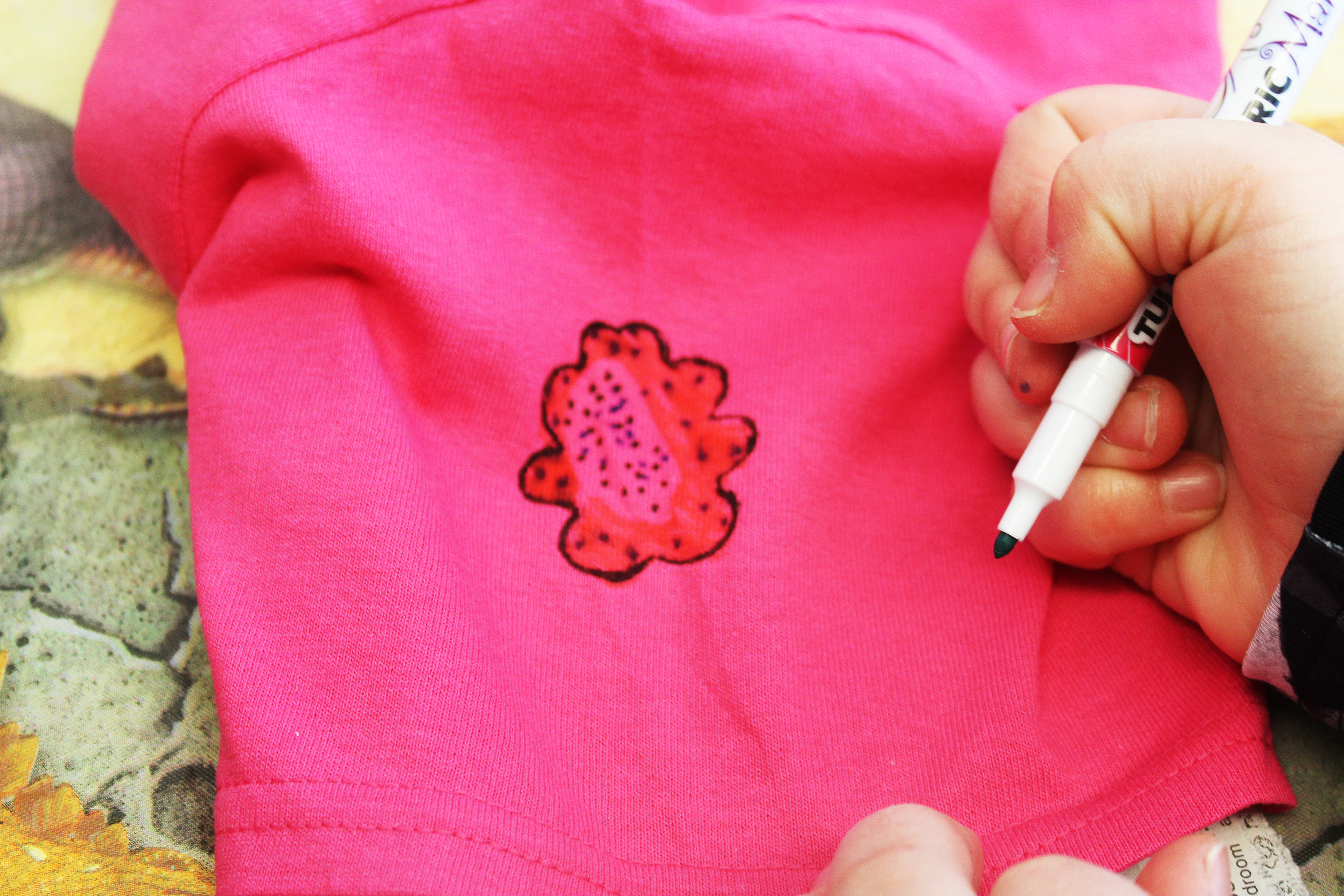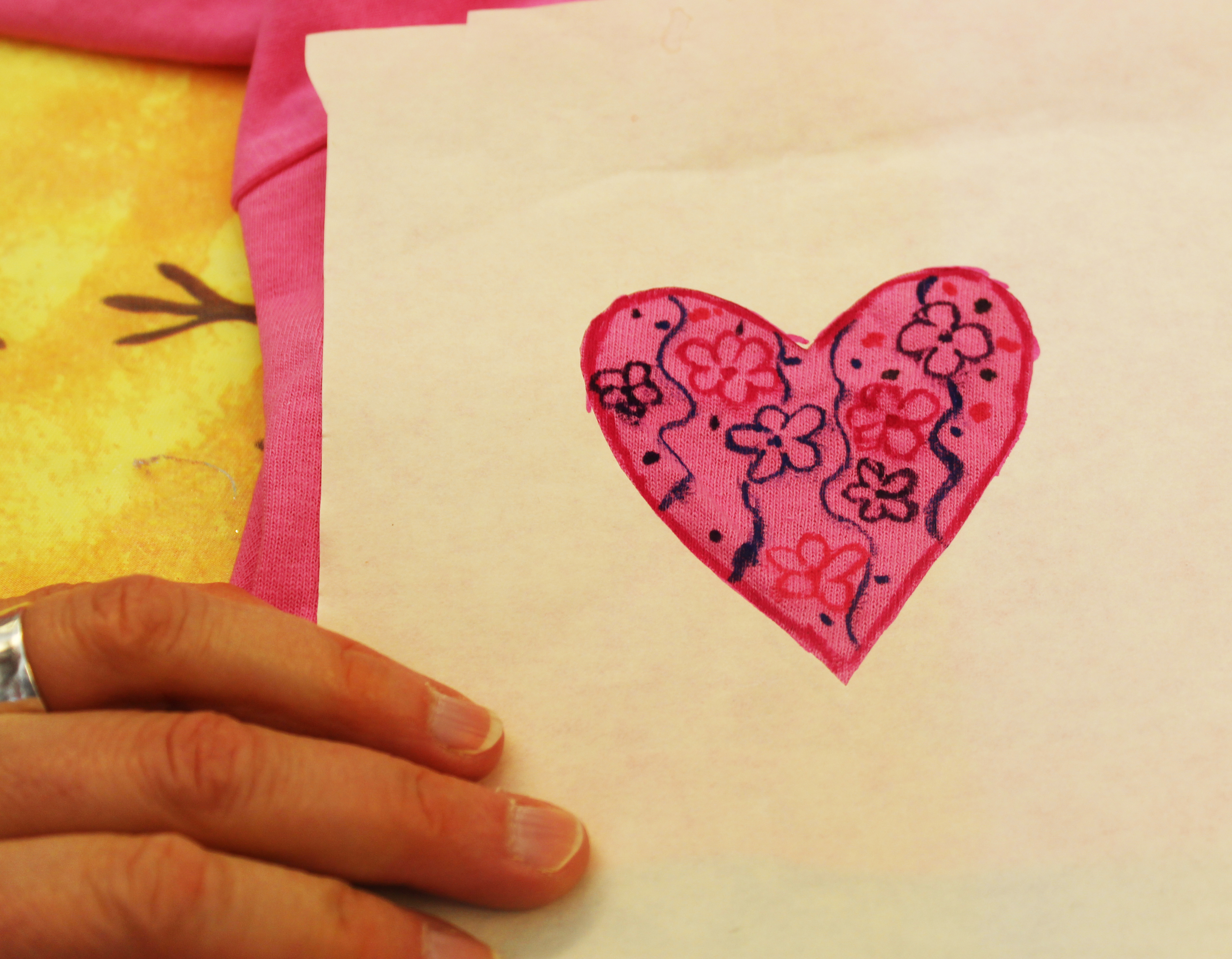 Carol Hubbard’s Sunday School class cut designs out of paper, such as hearts and flowers, and then transferred the designs to the T-shirt sleeves with freezer paper and a hot iron. The designs were then colored with markers.