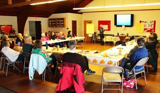 On Nov. 2, Dr. Susan MacKenzie of Colby College (far right in photo above) led members of our church during an all-day retreat, guiding us through observations we made and lessons we learned during a walk through the woods behind the church and applying them to how the church could best adapt while managing its future. The theme of the retreat: “Life Stages of the Forest, Life Stages of the Church”.