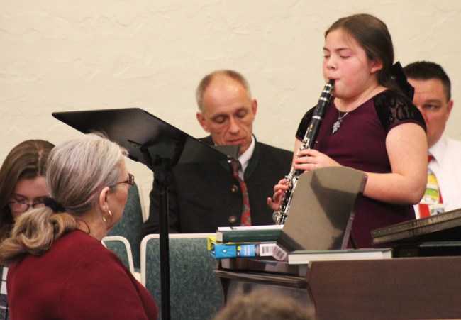 Also during the concert, Mark Braun and Tyler Rodenberg performed piano solos and Maddie Keezer played “Jingle Bells” on her clarinet.