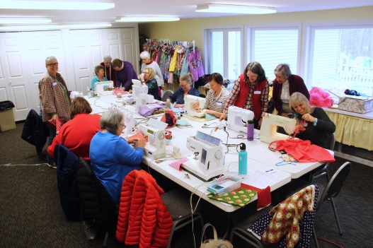 In previous years, our church’s Dress-a-Girl mission was taken on only by women from the congregation. But this year, through newspaper articles, organizer Judith Hill invited others from surrounding communities to take part. The response has been so great, sewing has spilled out of the Sunshine Room into Fellowship Hall. Participating women have come from Cape Elizabeth, Scarborough, South Portland, Portland, Auburn, Falmouth, Minot, Brunswick and Winterport.