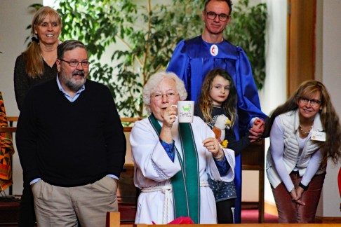 Our church held a Service of Gratitude for Pastor Mary Jane O’Conner-Ropp on Feb. 9, the final Sunday service before her retirement. Mary Jane joined our church as a co-pastor with Priscilla Dreyman last July, but decided to step down at this time for health reasons. The service included Mary Jane’s favorite scripture readings (Jeremiah 17:7-8 and Ephesians 2:16-19) and her favorite hymns, including God of the Sparrow, God of the Whale, and Praise God from Whom All Blessings Flow.