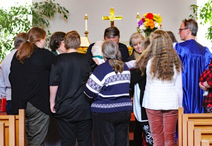 At one point during the service, members of the congregation came forward, formed a circle around Mary Jane and placed their hands on her to offer a farewell blessing. It was similar to the blessing Mary Jane had done a week earlier for children and their parents.