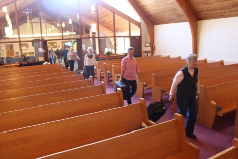 The suitcases with the dresses were taken into our sanctuary for a blessing.