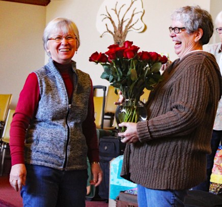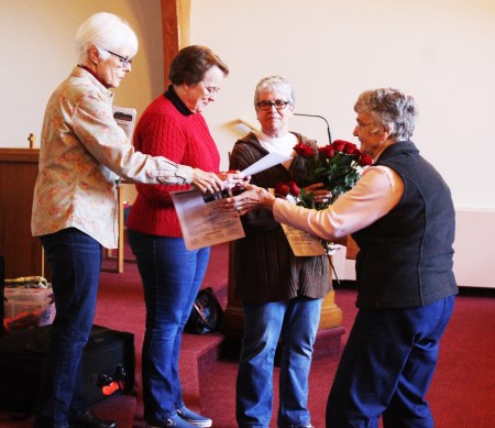 Afterward, each of the women who participated in the sewing mission were presented a rose and small gift from our Dress a Girl coordinators, Judith Hill, Linda Webster and Lili Acheson.