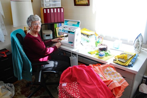 While many of the dresses were created during the Saturday sessions at our church, some women worked at home. Beverly Merrill, for example, created 80 dresses in her South Portland sewing room.