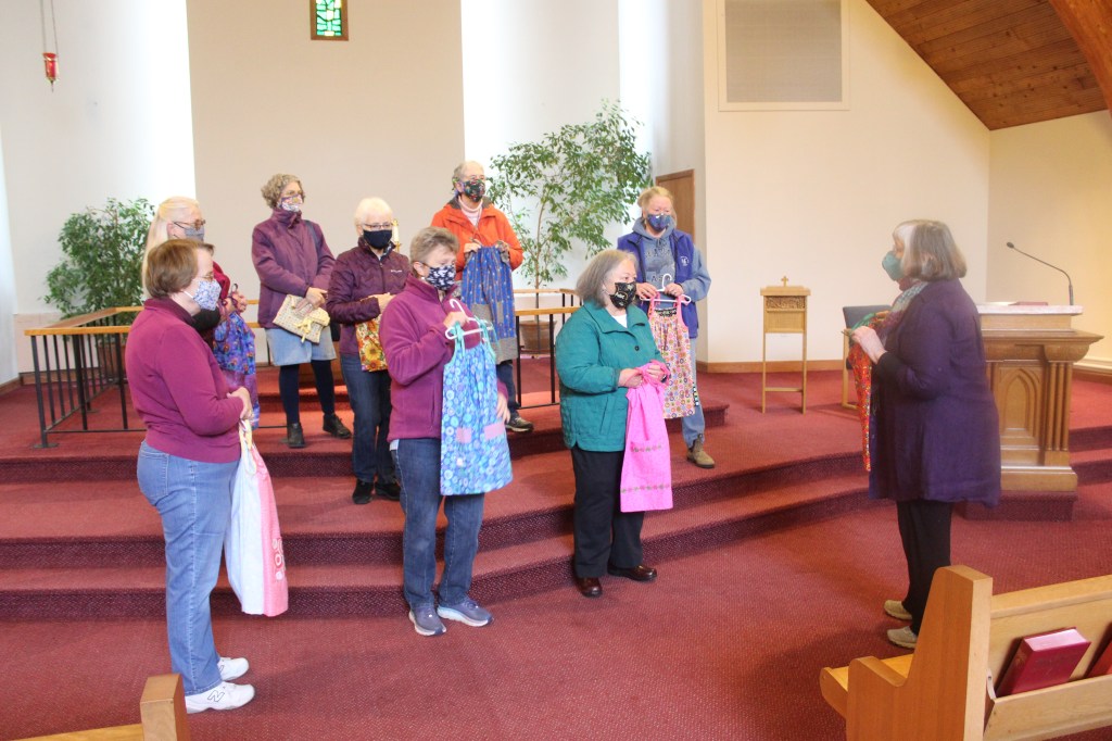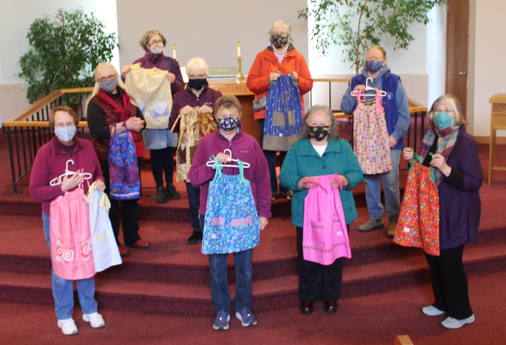 After women from our church and friends from surrounding communities created 550 dresses last year for the international Dress a Girl Around the World mission, it was uncertain they would be able to continue this year because of COVID pandemic restrictions on group gatherings. The group gathered on Saturday mornings for five weeks in our church last year to turn out their amazing total of dresses for girls living in poverty around the world.
