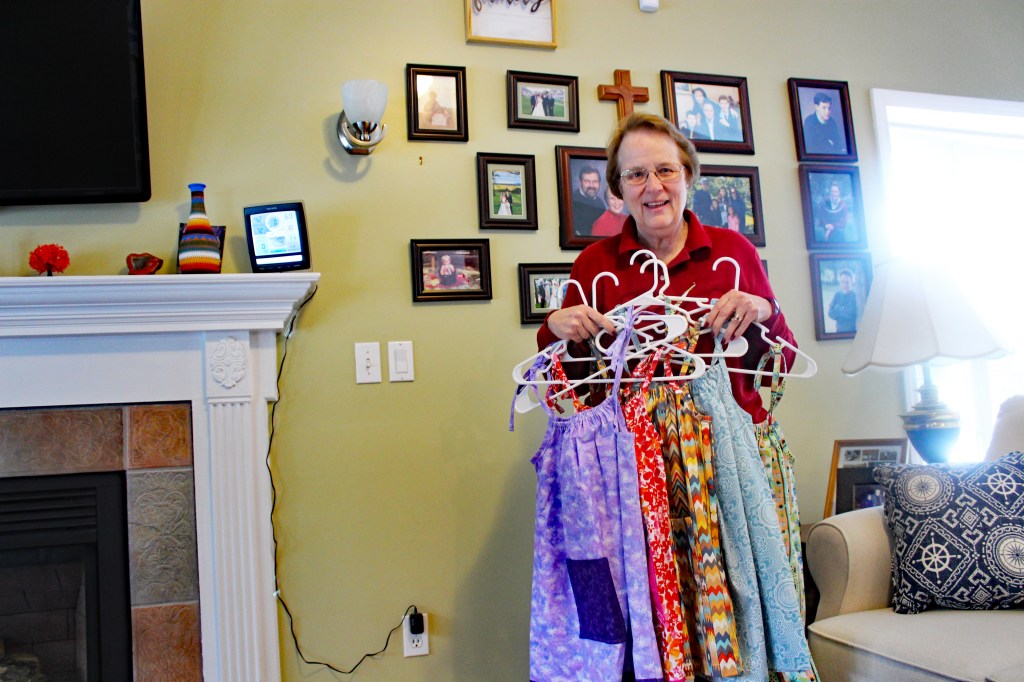 One woman, Maria Dietzel, who worked with the group in our church last year but who had since moved away, drove back to the church when all dresses were being gathered and delivered 40 more.