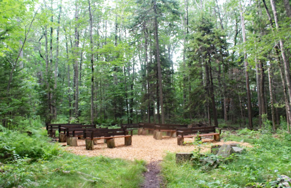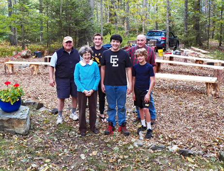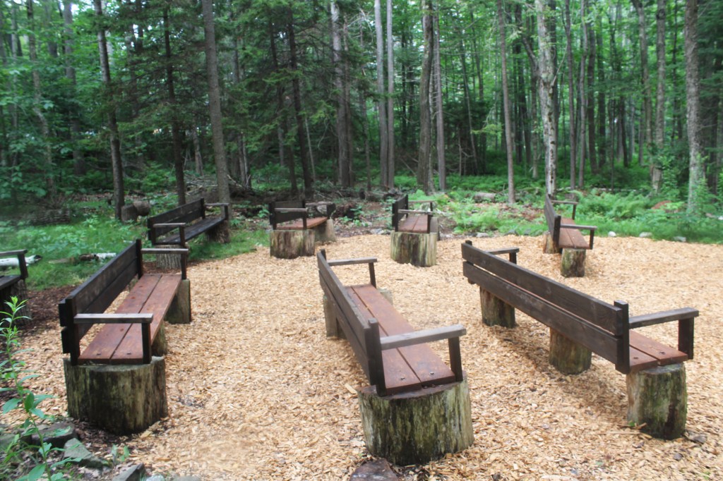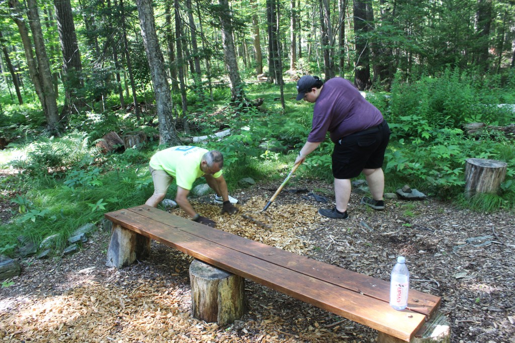 Jack’s work included installing a PVC drainage pipe covered with crushed stone and wood chips in the always wet ditch near the entrance of the trail leading to the chapel, covering the chapel floor and lead-in trail with fresh wood chips, installing backs on the existing benches in the chapel, and adding two new benches at the back of the chapel.
