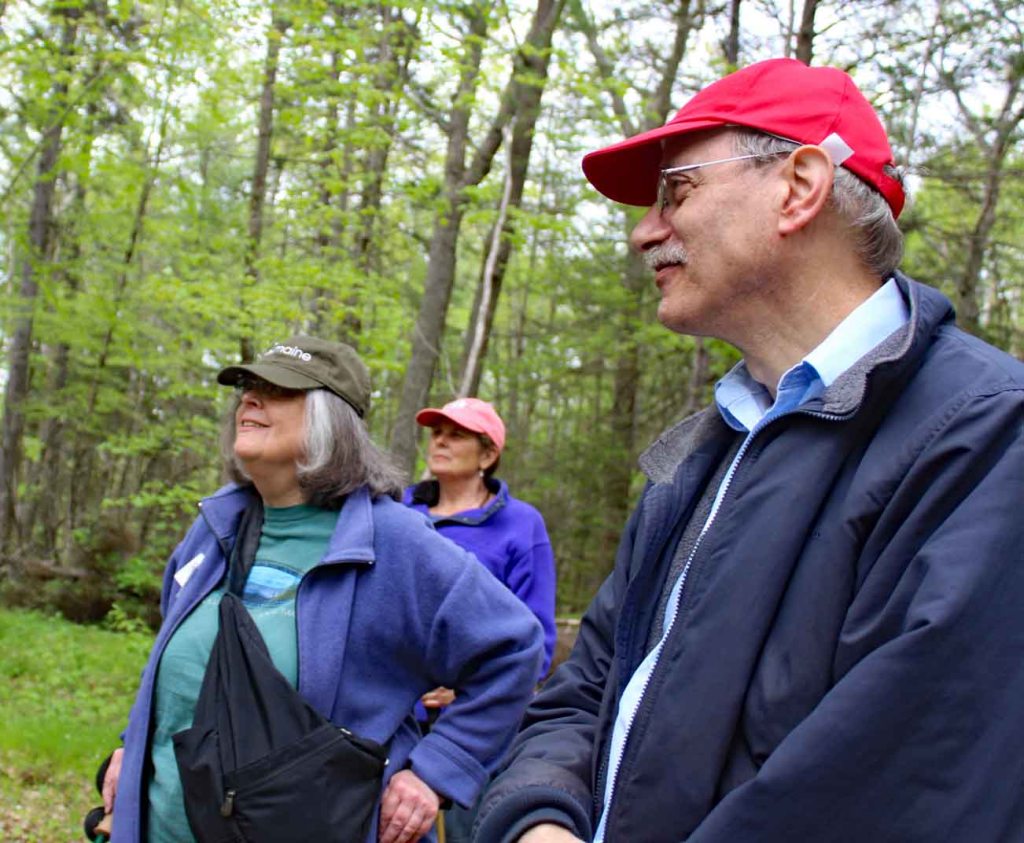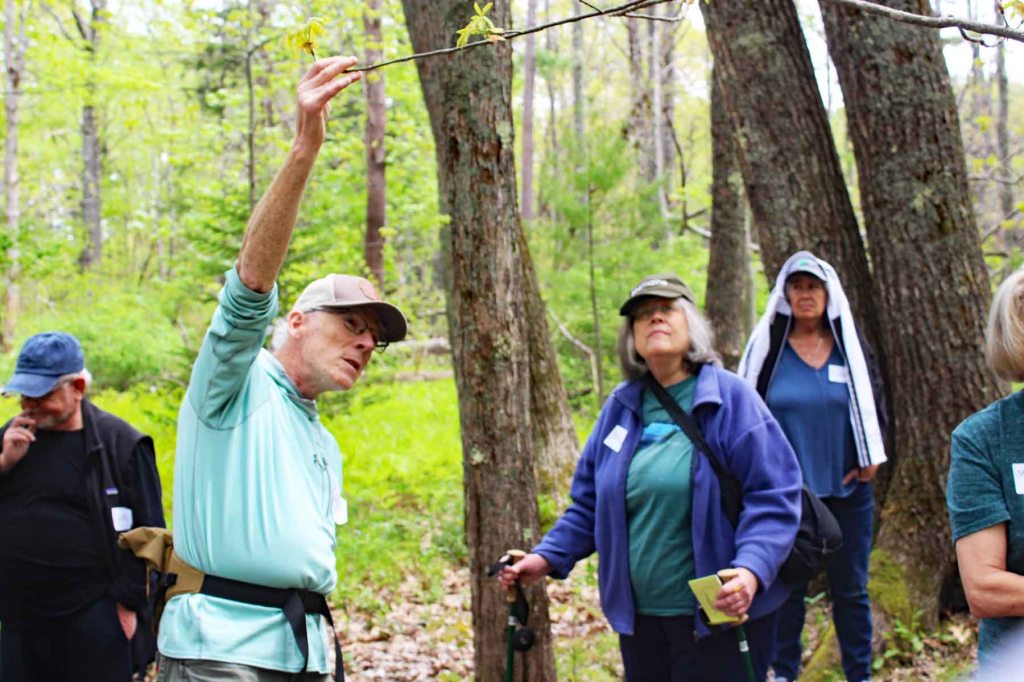 Jim led a slow-paced, open-minded exploration of the wooded property behind the church with insightful observations about trees, wildflowers, and vegetation. The success of the walk was also the vibrant interaction between the participants with Jim and with each other. It opened numerous conversations about the unique qualities of the woods with discussions about such things as sarsaparilla, jack in the pulpit, dogtooth violets, wild geranium, blue bell lilies, hobblebush, wood anemones, and gay wings.