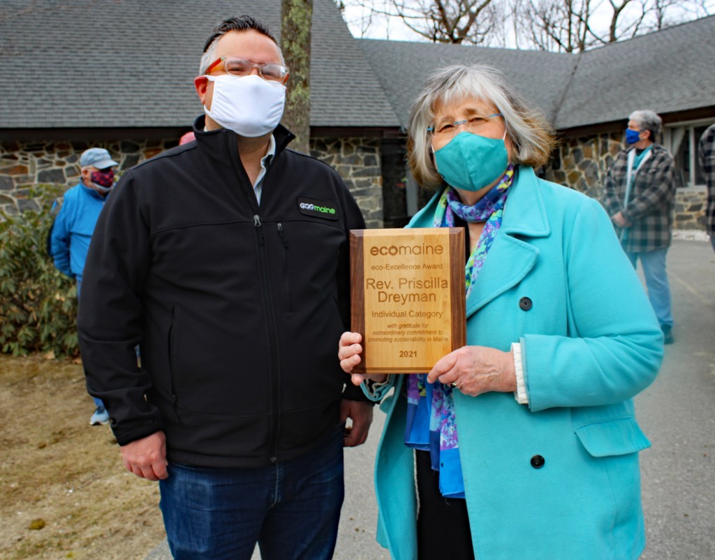 For her work in establishing the Eco Ministry, Pastor Priscilla in June 2021 was one of eight recipients to receive a 2021 eco-Excellence Award from ecomaine, a non-profit recycling and waste-to-energy organization. The award recognized Pastor Priscilla’s dream to create the environmental ministry and Eco Team within the CEUMC congregation that would focus on recycling and establish a greater awareness of the wonders of nature in Robinson Woods.
