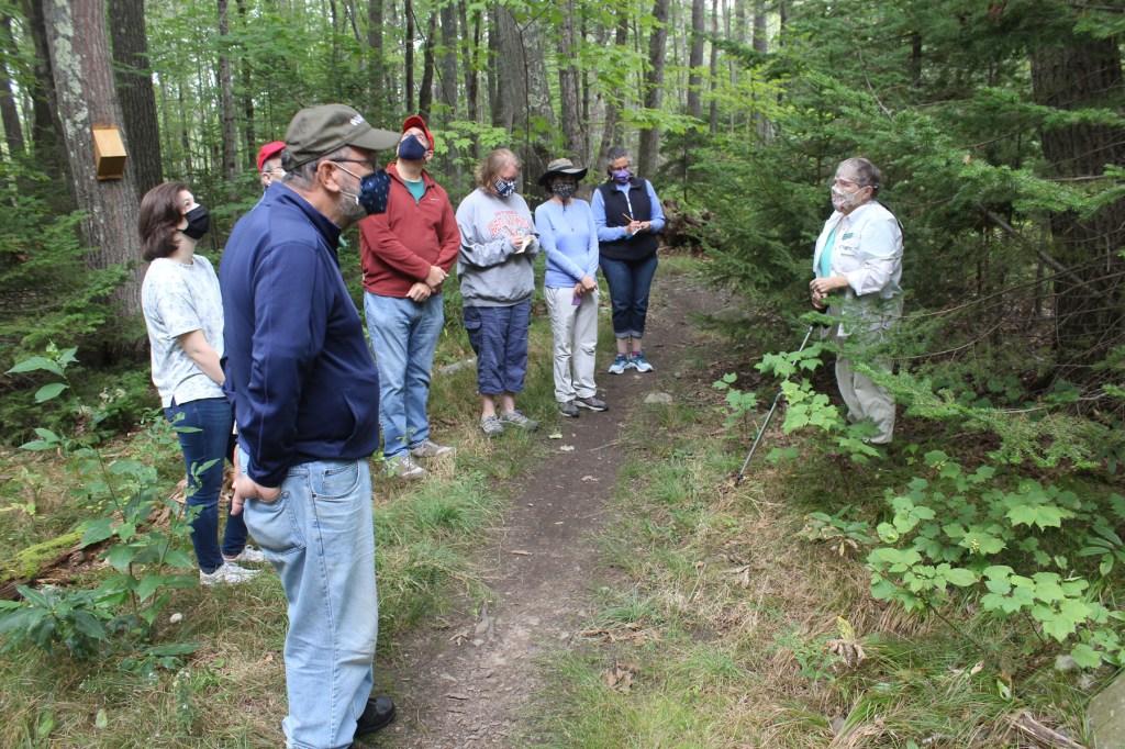 One of the Eco Team’s most successful components in fulfilling the Congregational Development for Tomorrow grant was its seven walks through Robinson Woods, using master naturalists, college professors and environmental experts. The walks twice were led by the Rev. Grace Bartlett, a Maine master naturalist, St. Joseph’s College Associate Biology Professor Dr. James Paruk, Southern Maine Community College Botany Professor Andrea Southworth, Maine Master Naturalist Susan Hayward and husband Tom, a renowned Maine birder, and Maine Master Naturalist Jack Flanagan. Church member Linda Greer also led a Gratitude Walk in silence to honor the foundations of Thanksgiving, and Dr. Paruk led a Zoom session about loons, “Maine’s favorite bird”.