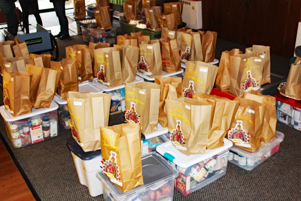 Cape’s Amy Lombardo and Jen Tinsman arranged for Cape families to contribute large bins of food, including stuffing, cranberry sauce, gravy, pie shells and canned pumpkin, canned vegetables, dinner rolls, roasting pans, sparkling cider, candies, nuts and more. Each family also received a gift certificate for a turkey.