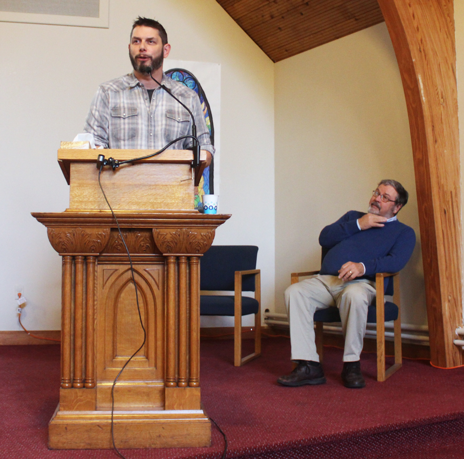 CEUMC Lay Leader Steve Hill introduced Trevor to the church gathering — Trevor had been a student of Steve’s at Greely Middle School.