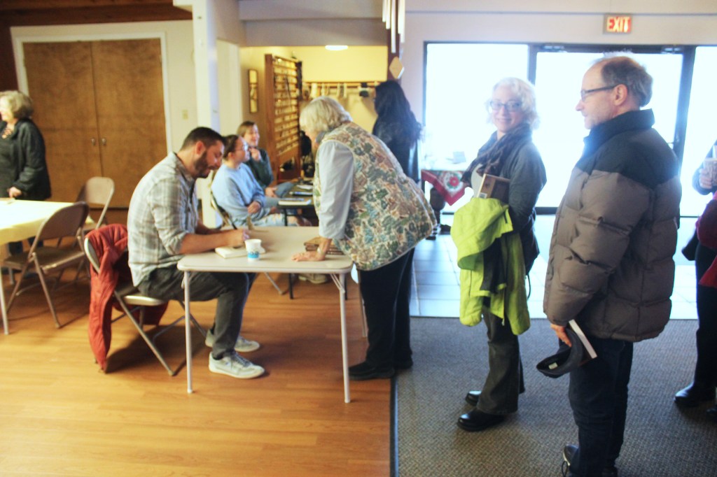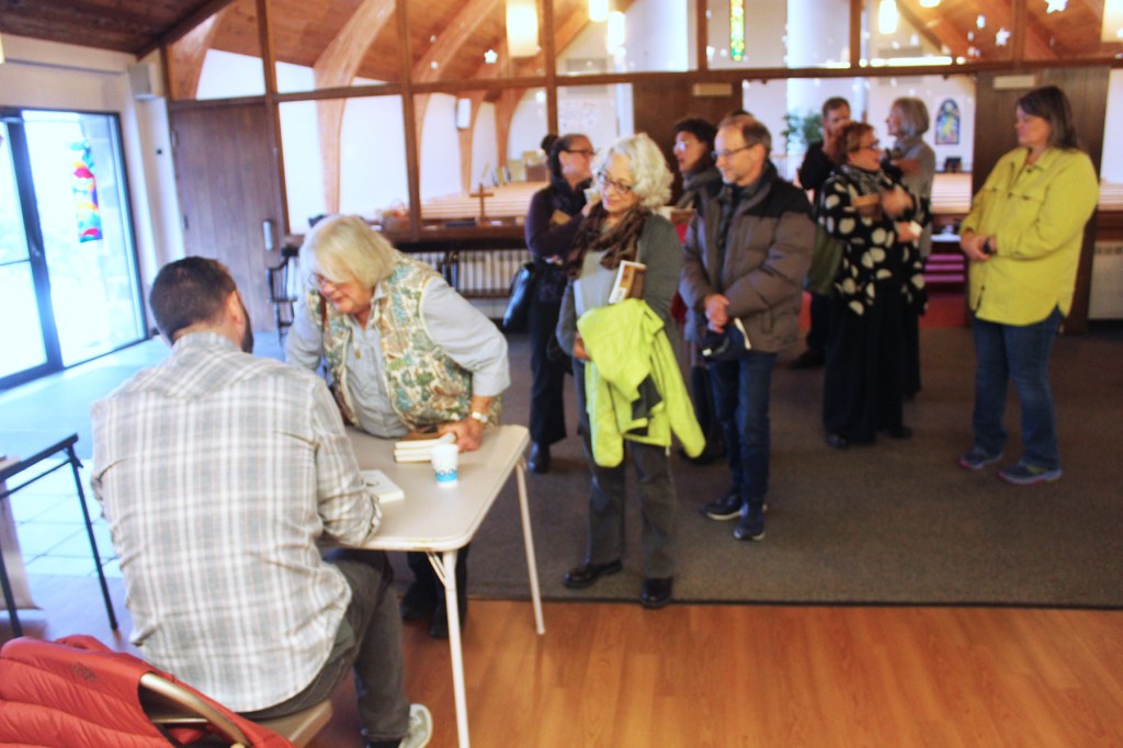 After his talk, a reception was held in Fellowship Hall and Trevor signed copies of his book for another hour.