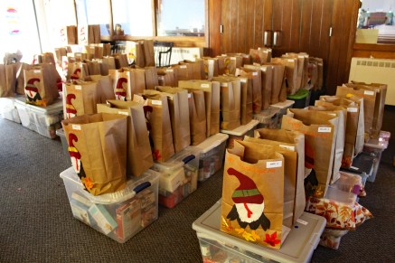 In addition to the food bins each family received a bag of fresh produce — onions, carrots, potatoes, squash and apples — from Jordan’s Farm.