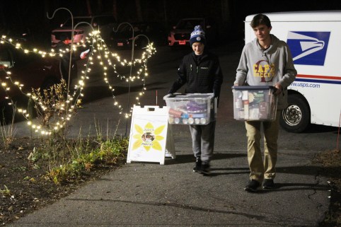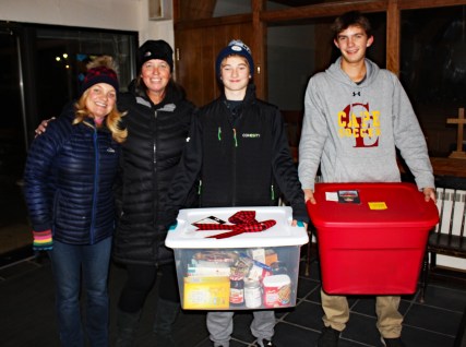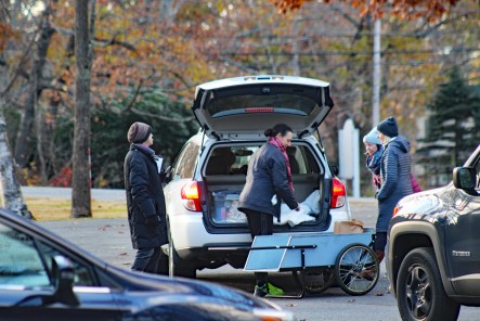 A food drive organized by Amy Lombardo and Jen Tinsman brought forth large bins of all the fixings for Thanksgiving, delivered to our church on Monday, Nov. 13 by families throughout Cape. One by one the bins were carried into the church by Luke Lombardo and Henry Trowbridge and organized by Pantry volunteers.