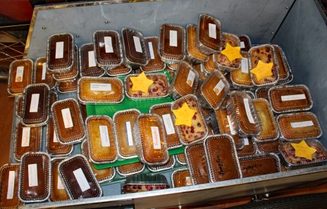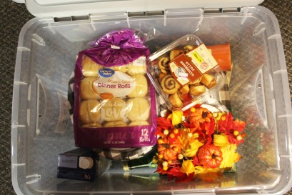 Each food bin was overflowing with all the Thanksgiving fixings including cranberry sauce, gravy, fresh green beans, instant potatoes, canned corn, canned yams, stuffing, canned pumpkin, pie crusts, soups, Jello, candies, pickles, chicken stock, peanuts, crackers, dinner rolls, sparkling cider and roasting pans. Also included were Hannaford gift certificates to purchase a turkey.