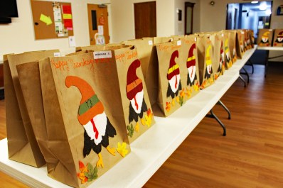 The colorful and festive bags of vegetables were once again decorated by Lisa Stevens and her daughter Rosie.
