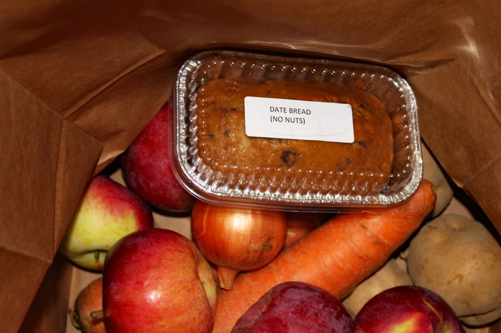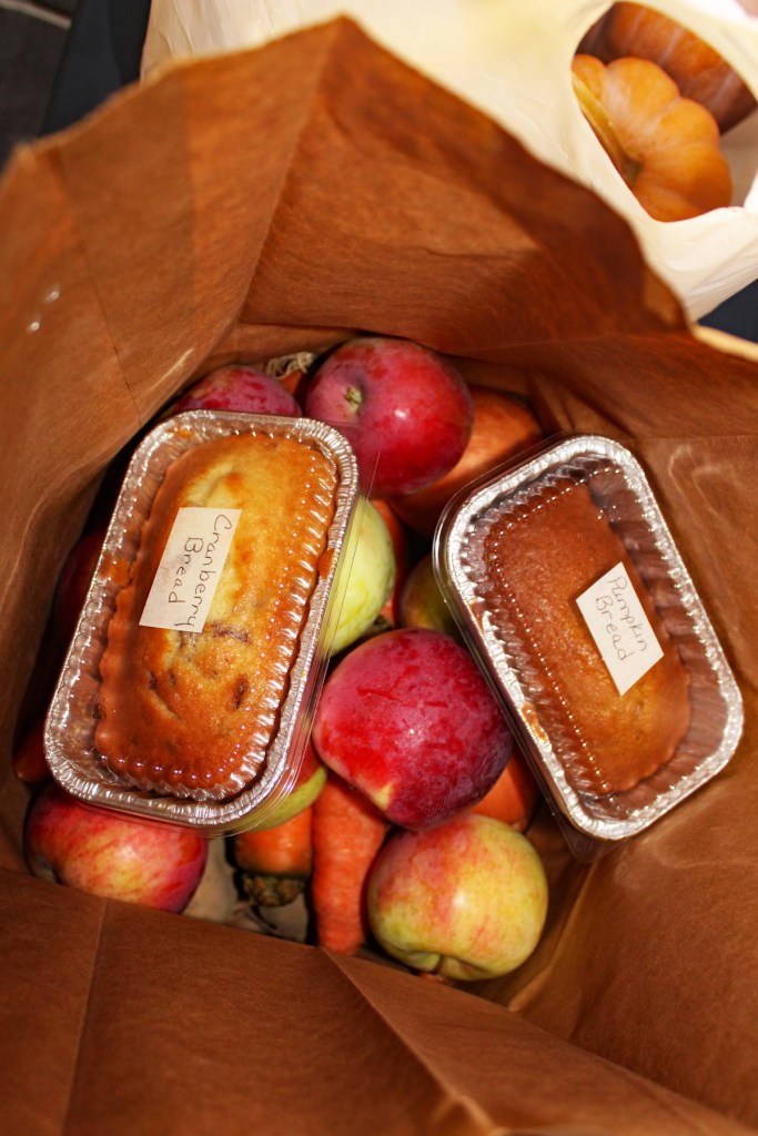 The bags of vegetables also include mini loaves of breads baked by members of the church. A total of 75 loaves were baked this year including pumpkin, cranberry, date-walnut, banana, chocolate, and Hawaiian banana. The creative and colorful bags for the vegetables and breads were once again decorated by Lisa Stevens and her daughter Rosie.