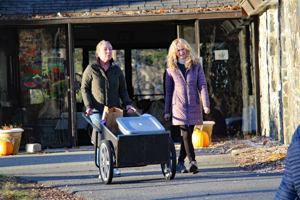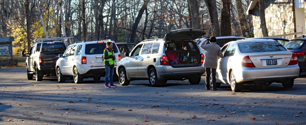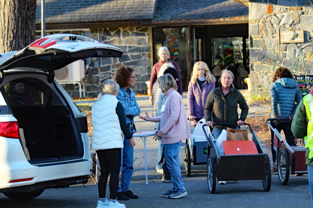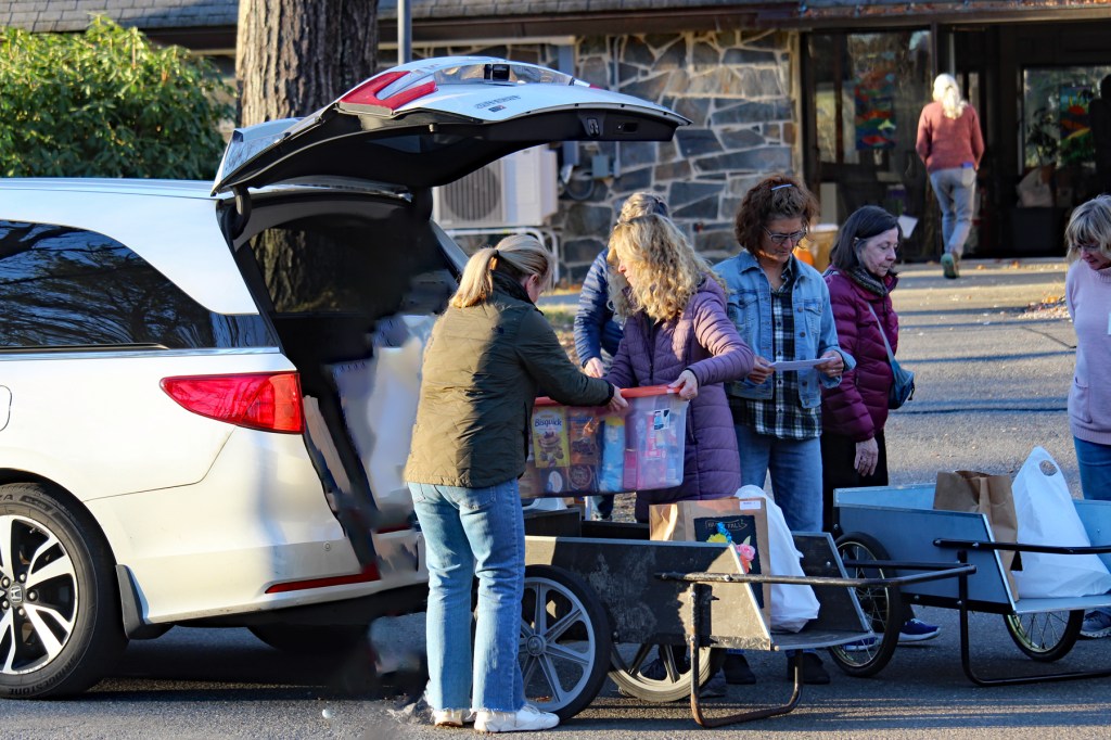 The next day, cars lined up and volunteers from Judy’s Pantry wheeled out and placed the Thanksgiving offerings into each client’s car.