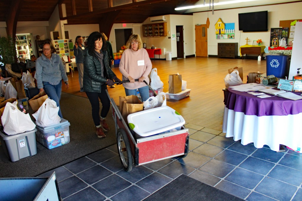 All of the bins were delivered to the church on Monday, Nov. 18 for distribution the following day. When each bin arrived, Luke Lombardo and Will McCoy carefully and efficiently brought them into Fellowship Hall.