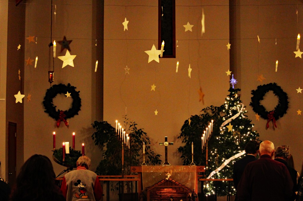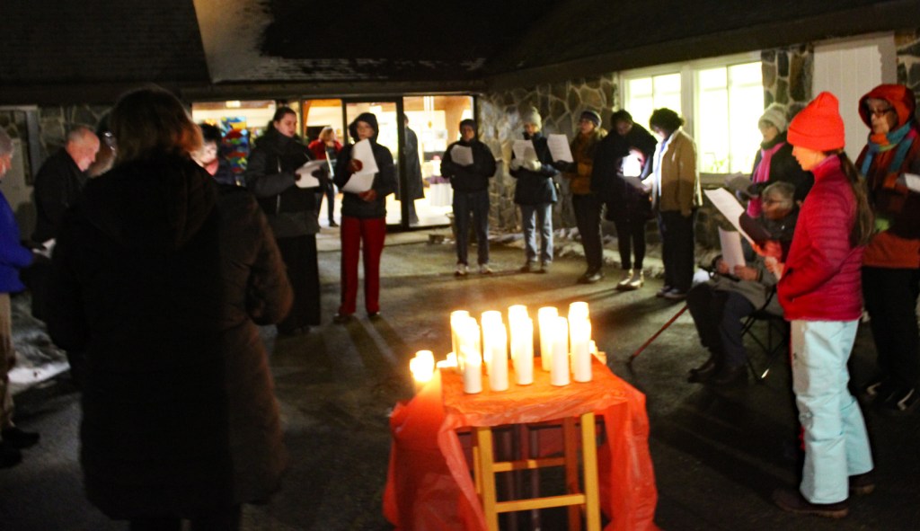 Worship began with Christmas caroling outside by candlelight.